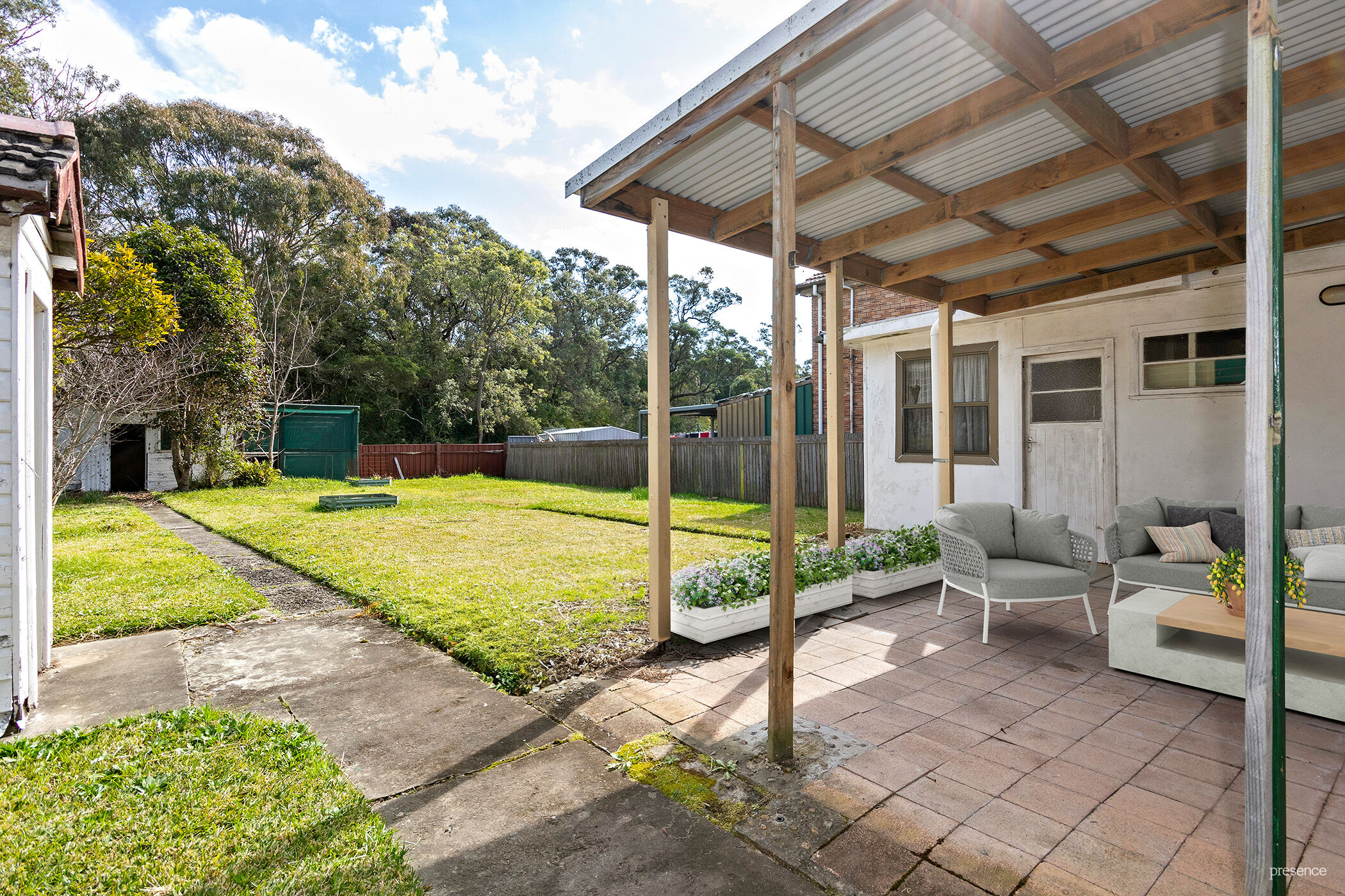 – Covered rear entertaining area