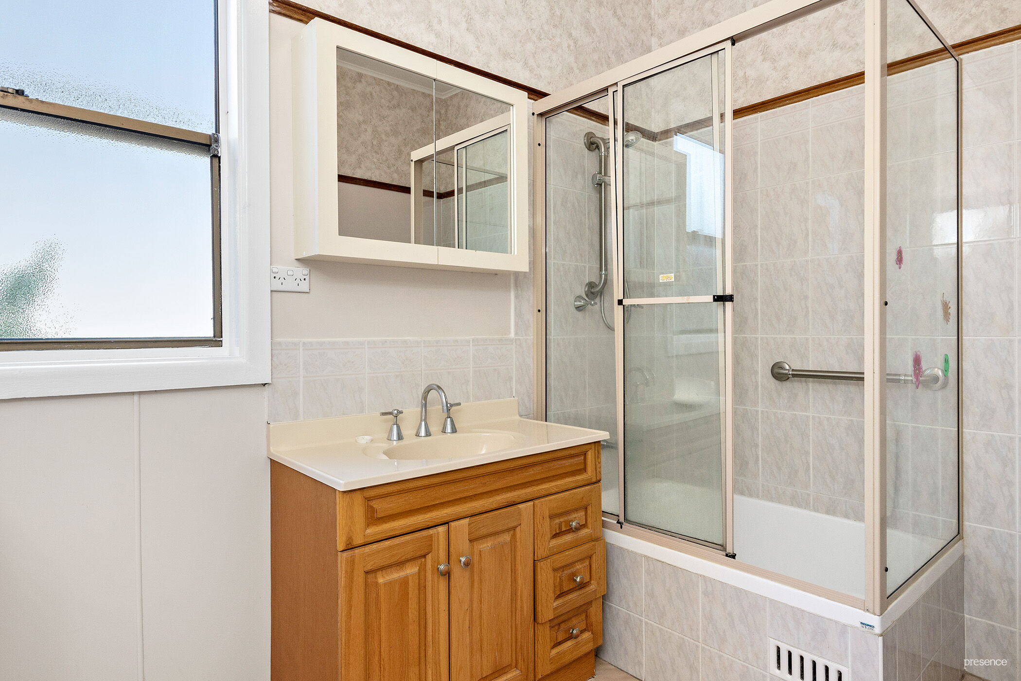 – Neat and tidy full size bathroom with internal laundry