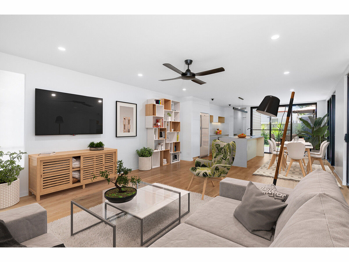 Upon entering you are greeted by a ground-floor bedroom with it’s own full-size bathroom, perfect as a guest suite or home office. Then the expansive air-conditioned open-plan living, dining, and kitchen area all opens up and showcases what an amazing home this is. The sleek and stylish kitchen is full size with vast storage, great storage and a large island with feature lighting. Completing this level is the alfresco deck area and wrap-around greenspace.