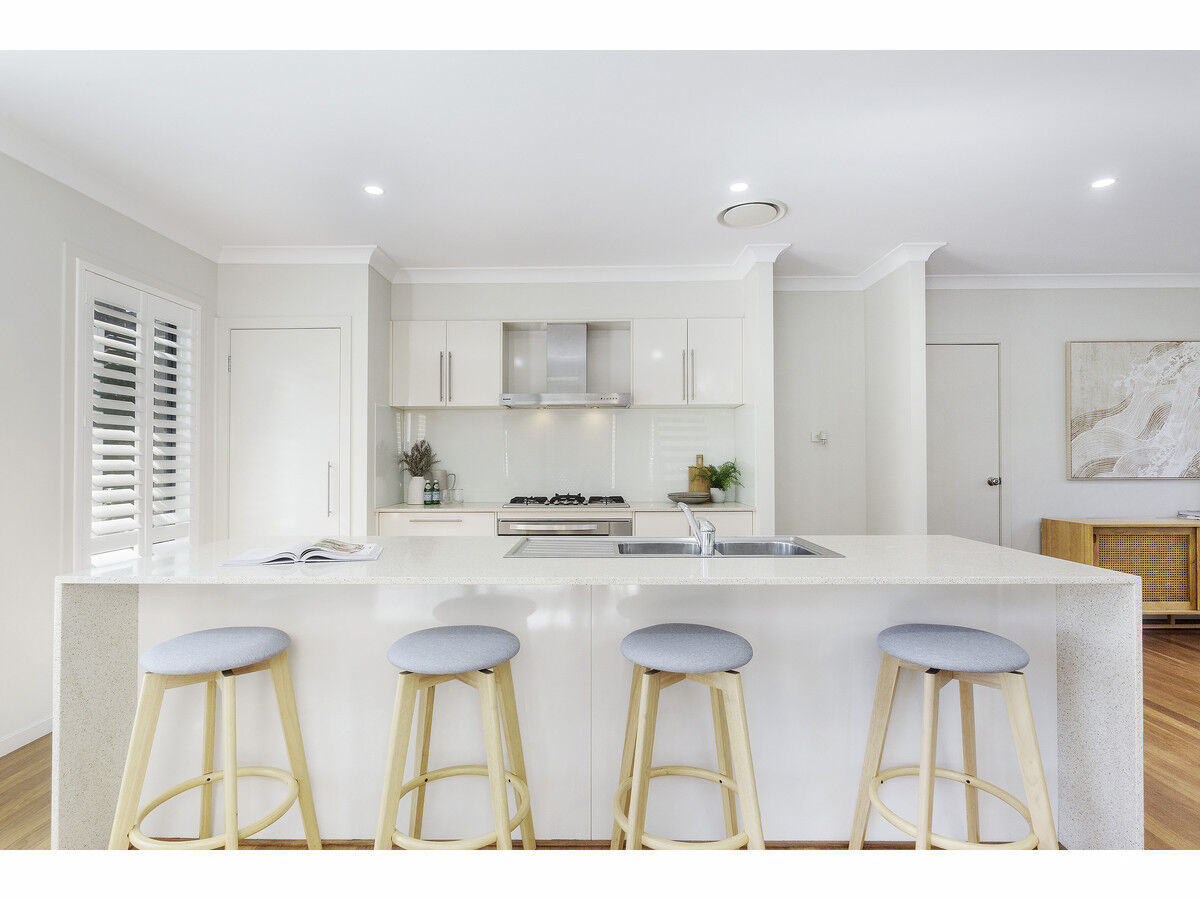 Toward the rear of the home is the impressive open plan gourmet kitchen and dining space that is framed by windows providing an abundance of natural light. The kitchen features quality stainless steel appliances including a 900mm Blanco oven, five burner gas cooker and stainless steel dishwasher.