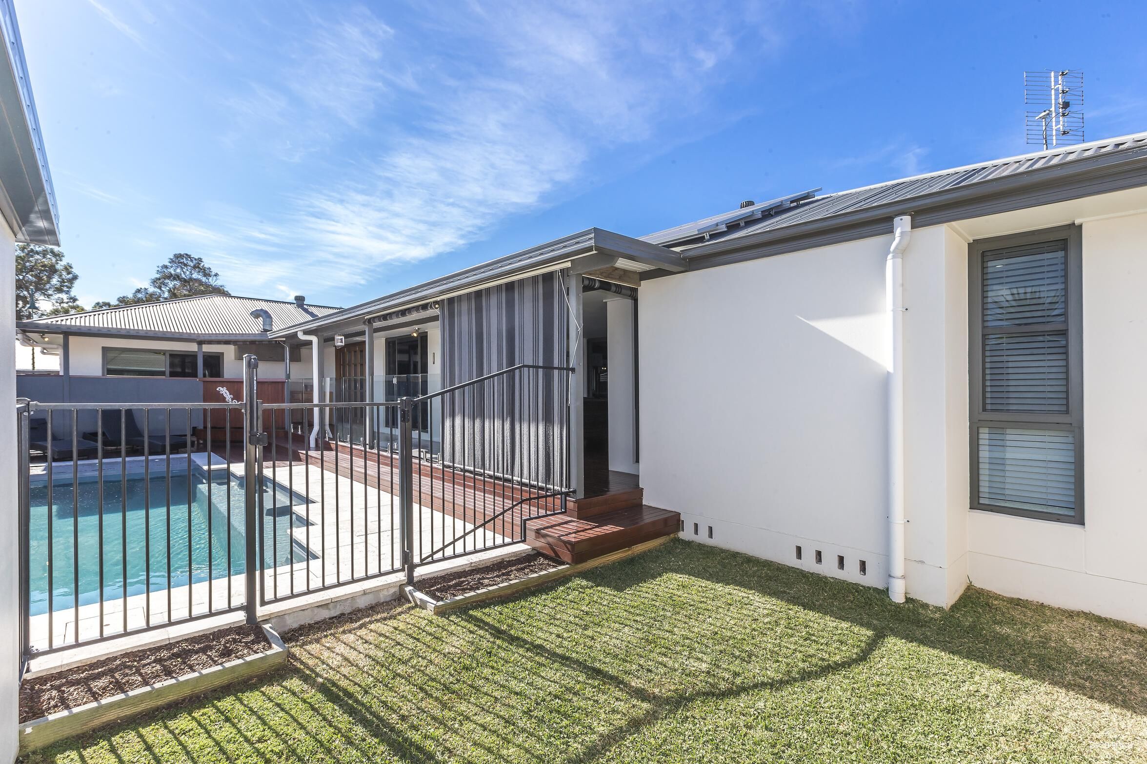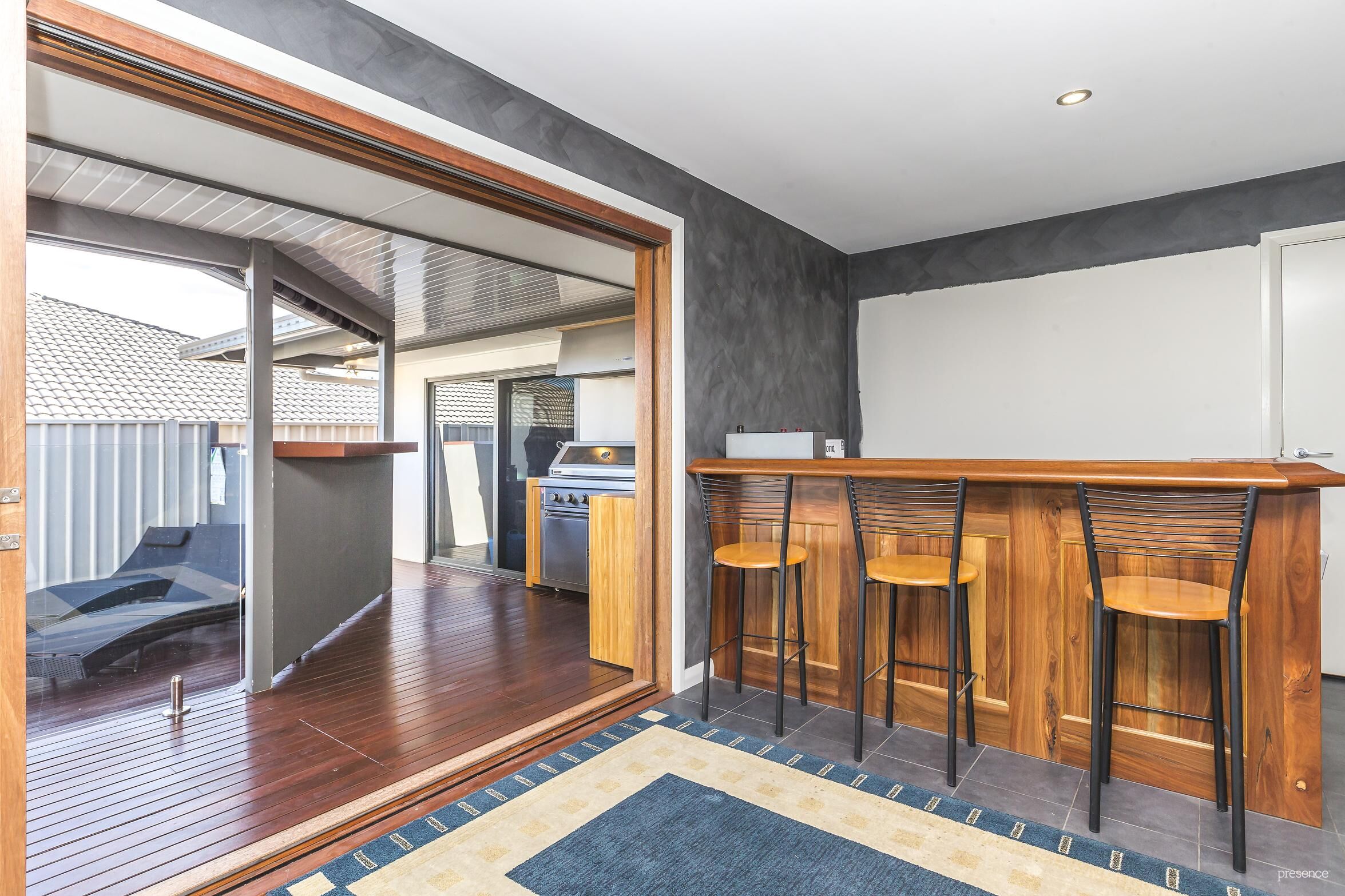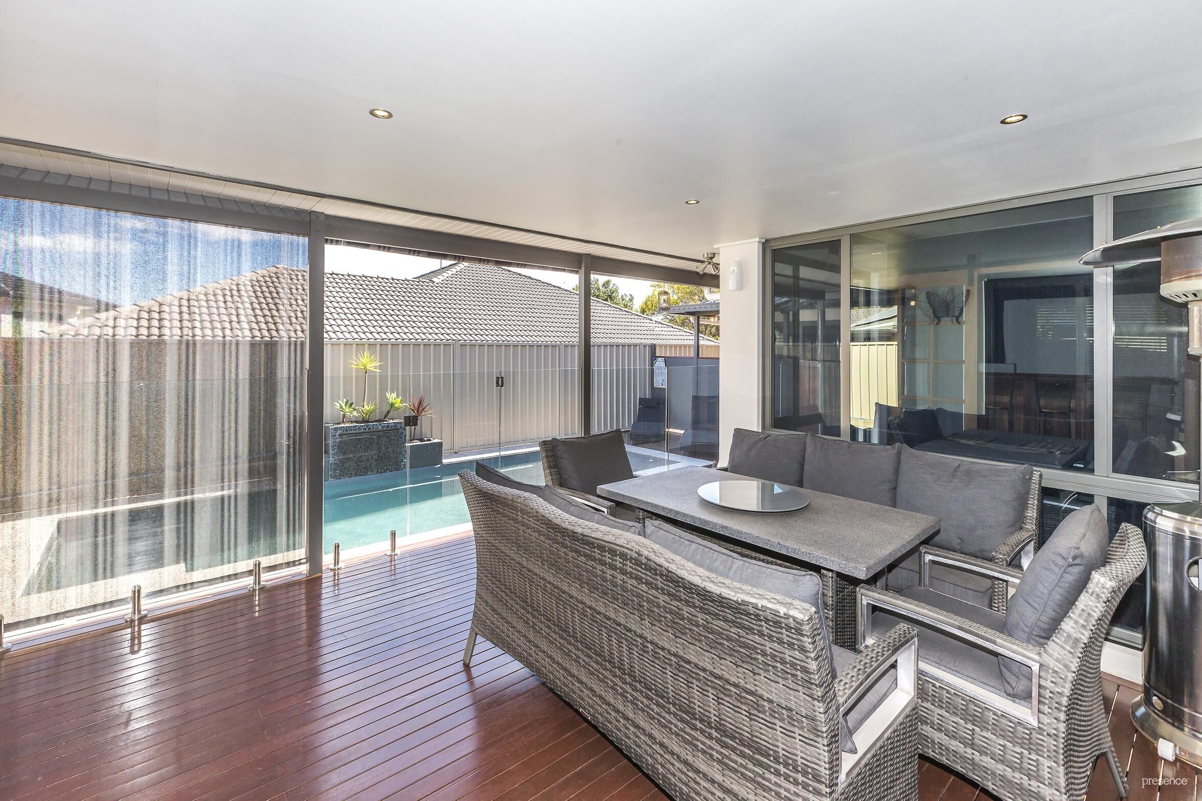 – Outdoor entertaing on the huge covered rear deck all overlooking the pool and yard
