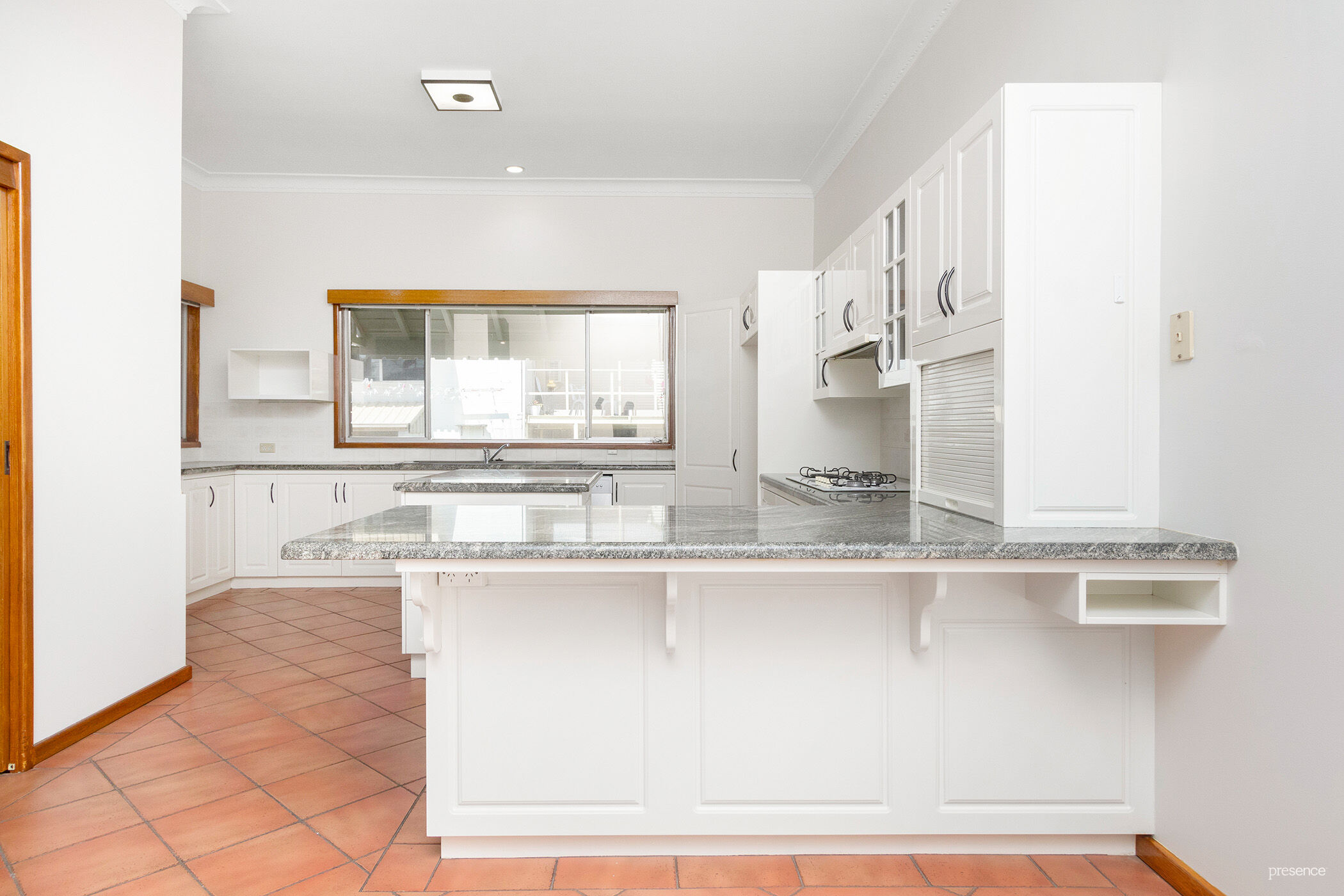 – Large modern kitchen with vast storage, gas cook-top, electric oven, dishwasher and prep island