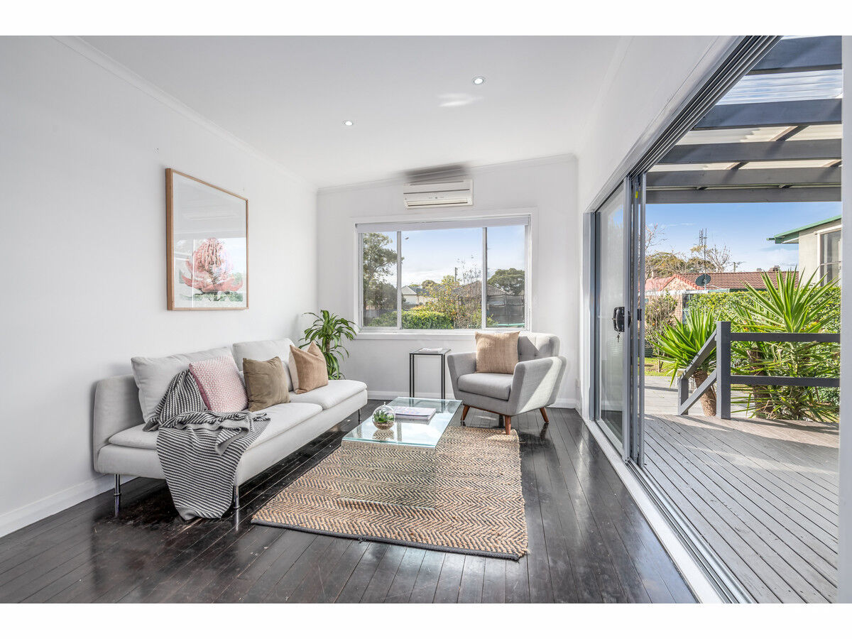 The home’s floorplan remains in the traditional format with a central hallway splitting four generously sized bedrooms and a cosy lounge room before the contemporary Caesarstone kitchen takes pride of place at the rear adjoining a dining nook and relaxed family living zone. Sliding doors open out from this air-conditioned space onto a decked alfresco area creating seamless indoor – outdoor living and entertaining, while the level backyard with an array of fruit trees and veggie beds enjoys a perfect northerly aspect.