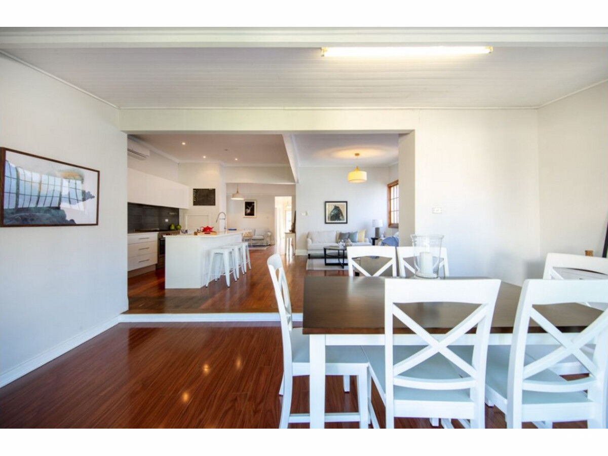 Resting in one of the suburbs best positions sits this character rich home that offers all the creature comforts along with period elegance and modern updates. The picket fence frames the home while the front porch completes the front facade. The dining room combined with lounge looks onto a great entertainers deck which will be perfect for entertaining in the summer months. The three double bedrooms are light filled and a clever renovation connects a formal lounge room into a modern day open style living zone complete with a chic stone kitchen and the polished timber flooring allows for easy-care living throughout.