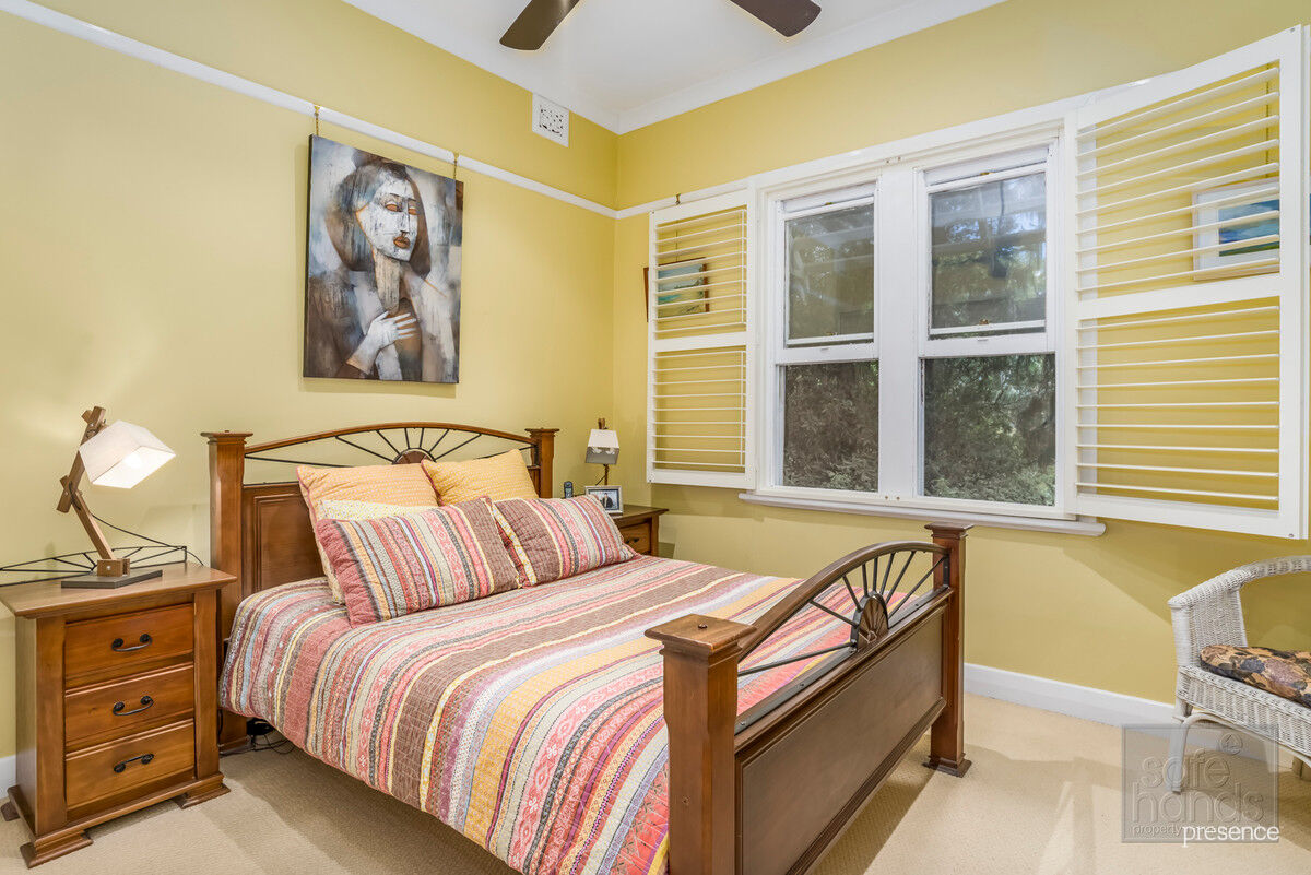 – Master bedroom with ceiling fan, plantation shutters and built in wardrobe