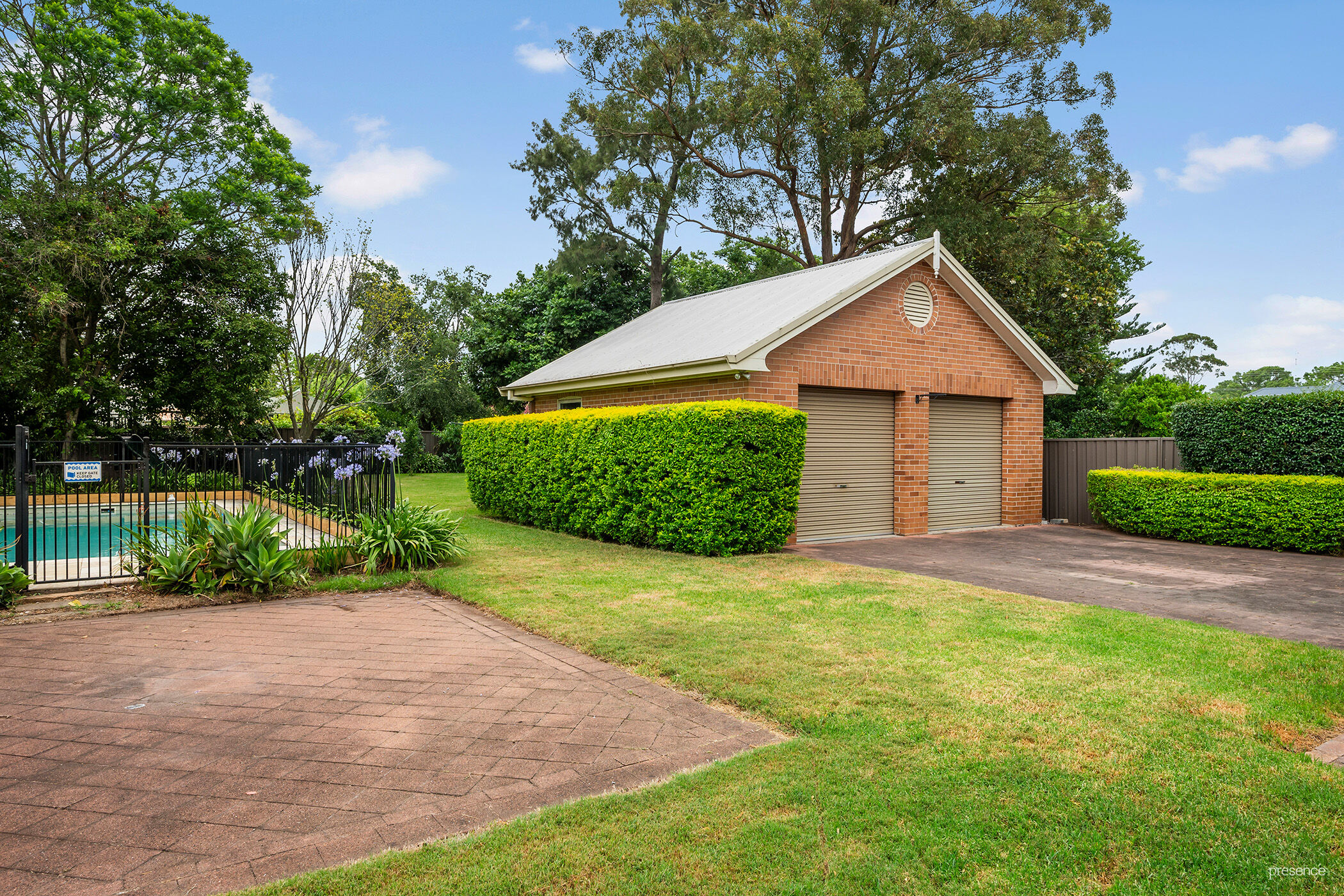 Step into the beautifully landscaped gardens, which frame a sparkling pool—just in time for summer fun. Pool maintenance is conveniently included, ensuring effortless enjoyment of this private retreat. A large double garage provides ample space for vehicles and storage, catering to all practical needs. With every detail meticulously considered, this home offers the perfect balance of elegance, comfort, and functionality.