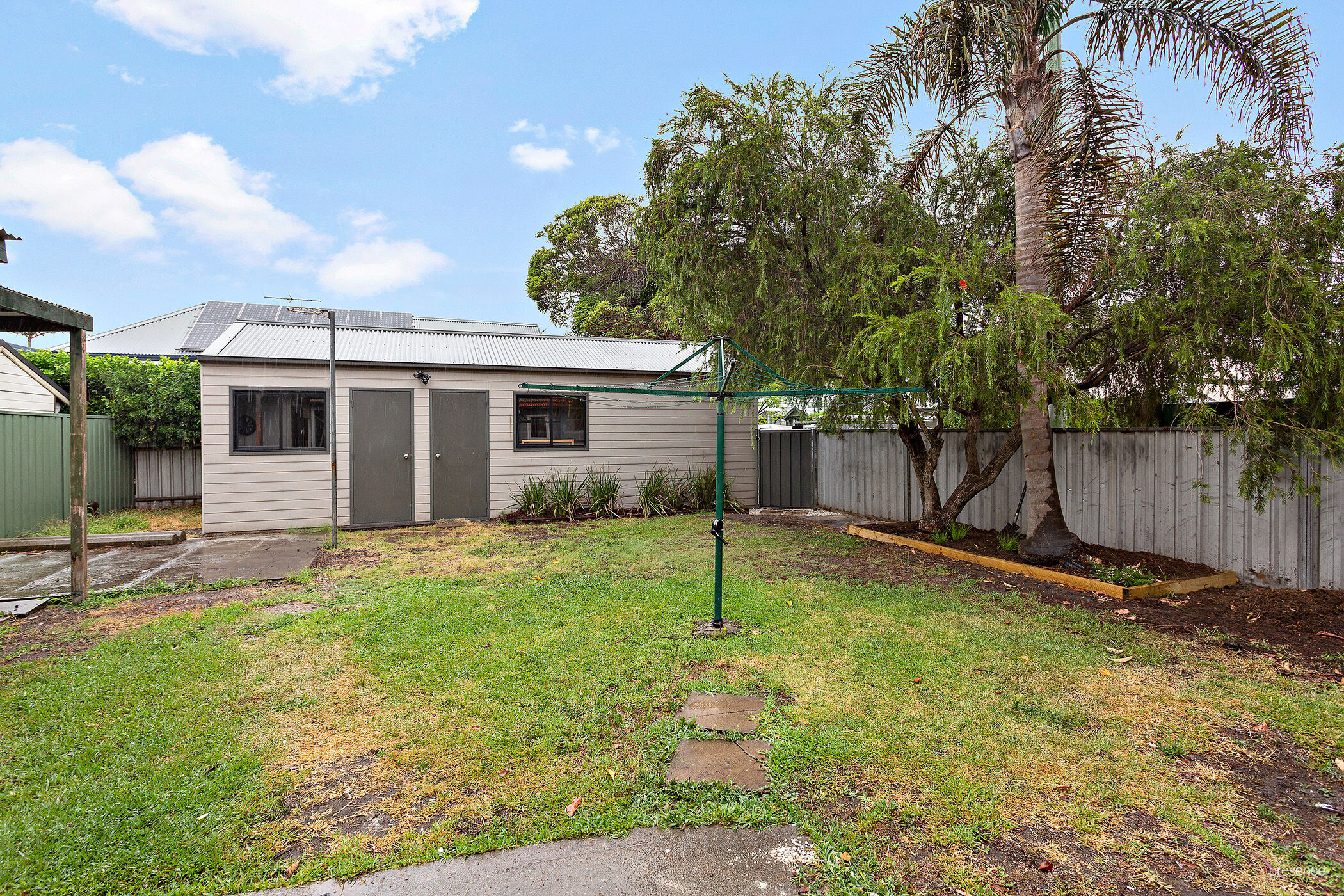 – Good size rear yard with garden shed, small patio area, large workshop/storage room