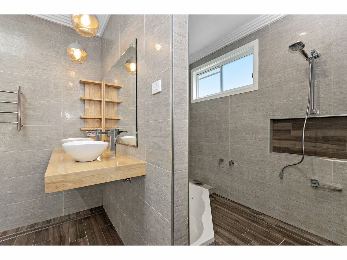 The house itself boasts a comfortable and stylish living experience. Comprising three bedrooms, two equipped with built-in robes, the accommodation is both practical and spacious. The large family bathroom is a luxurious retreat, featuring a spa bath and a walk-in shower. The internal laundry is full-sized, catering to the demands of modern living. The property offers five ceiling fans to ensure optimal climate control. The brand-new kitchen is a chef’s delight, complete with a large gas range, dishwasher, and ample storage space. The central dining area seamlessly connects to the expansive living space, creating a harmonious flow. Step outside to the covered alfresco area, featuring a bespoke seating arrangement, perfect for outdoor gatherings. The property is further enhanced by a long side driveway accommodating parking for three cars, a low-maintenance yet charming backyard, and a practical garden shed for added storage convenience.