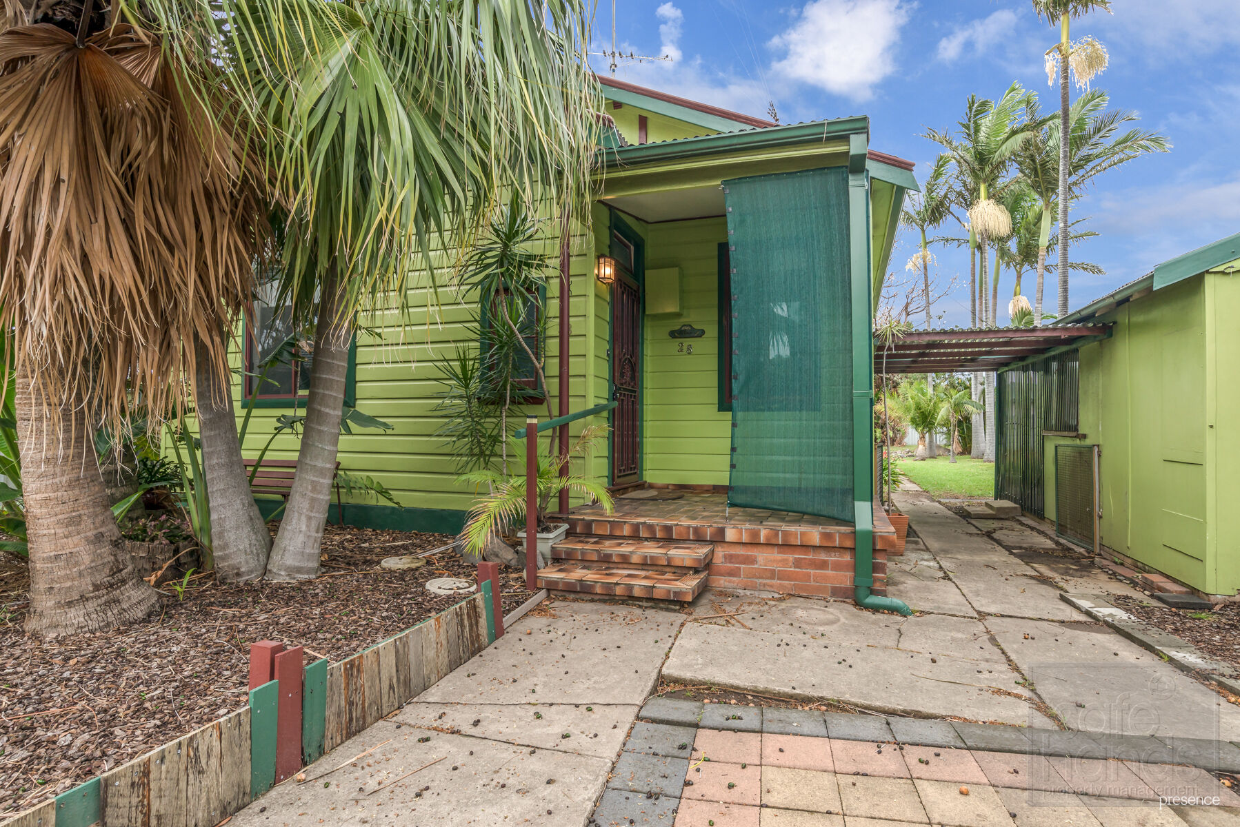 Note: Large tree in rear and two front palm trees are being removed this week