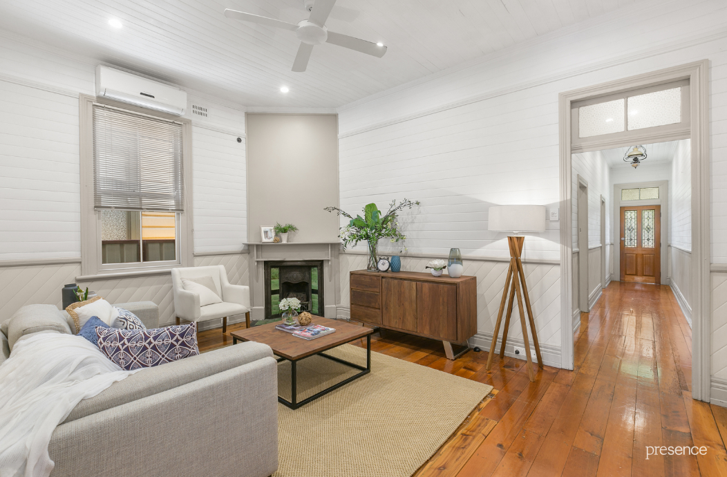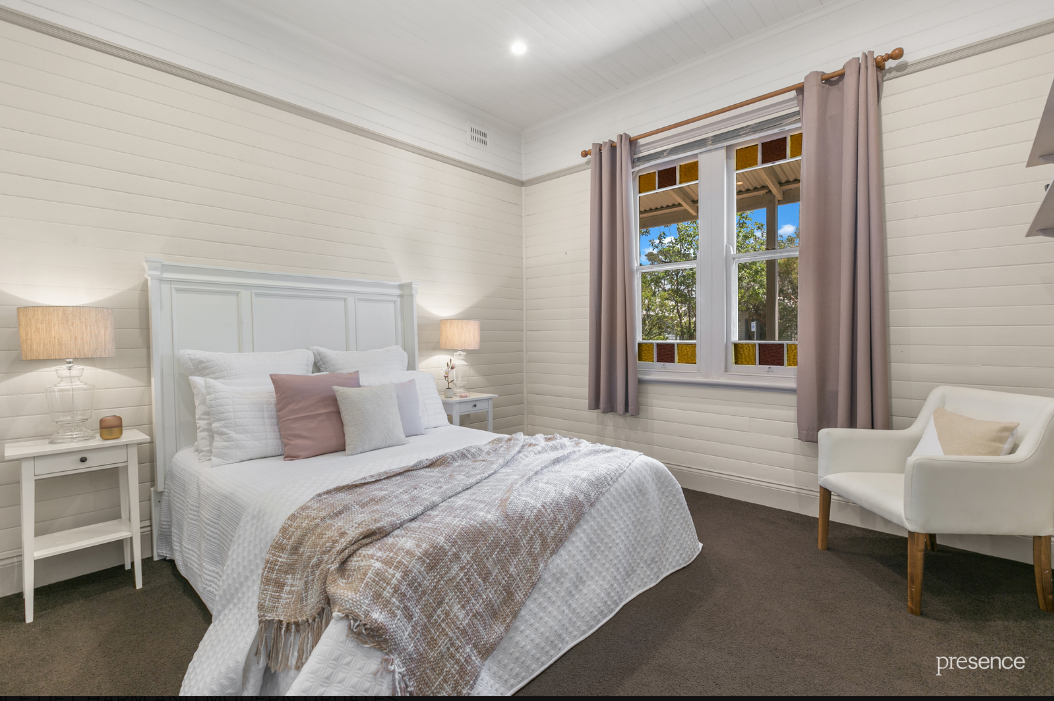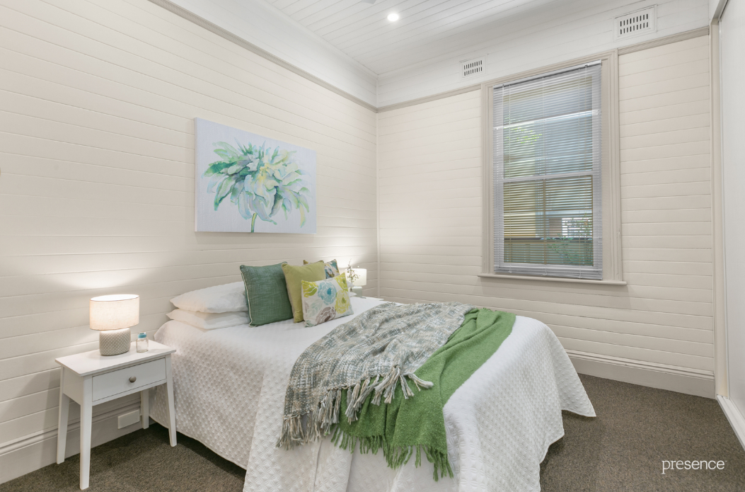 The entry presents to a lovely hallway with dado boards and as original floor boards, lovely colour scheme gives a lovely soothing impression. The two bedrooms have high quality carpet and one with oversized wardrobe, the windows have leadlight features but allows loads of natural light.
