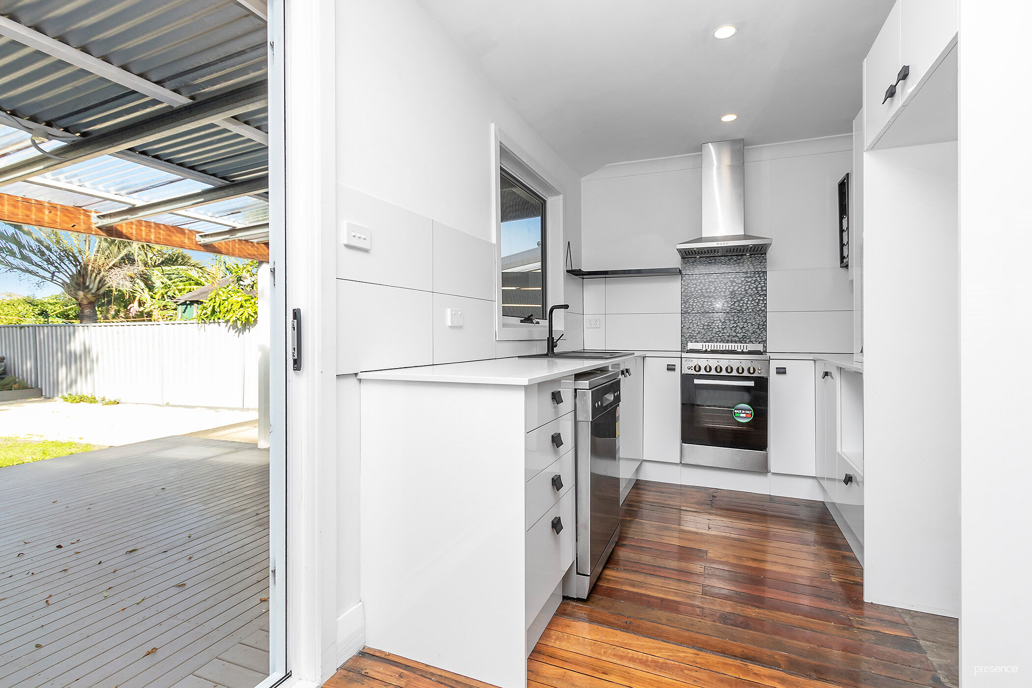 Serviced by two modern bathrooms, three good size family bedrooms feature built in robes. A central open plan air-conditioned living and dining space is accompanied by a sleek white modern kitchen