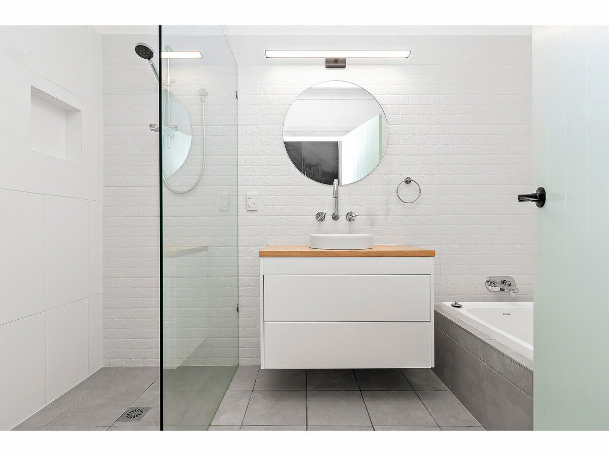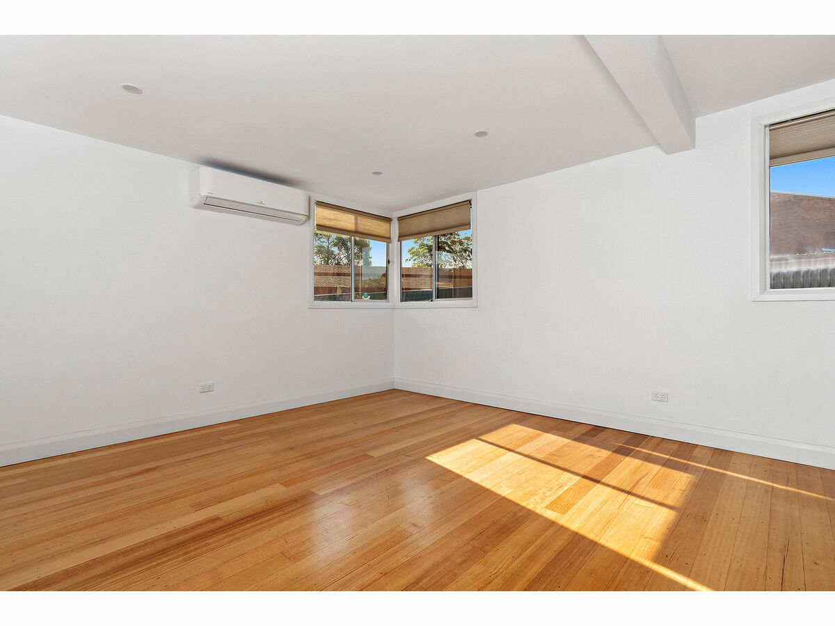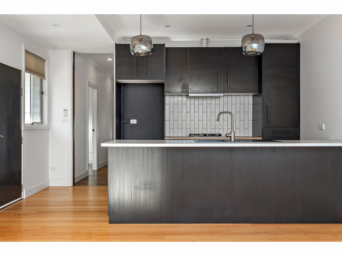 Inside is spacious with three bedrooms with two bedrooms having built in robes, sleek and stylish family bathroom. Large open plan air-conditioned living, dining area with matt black bespoke kitchen with feature pendant, gas cooking, dishwasher and good storage.