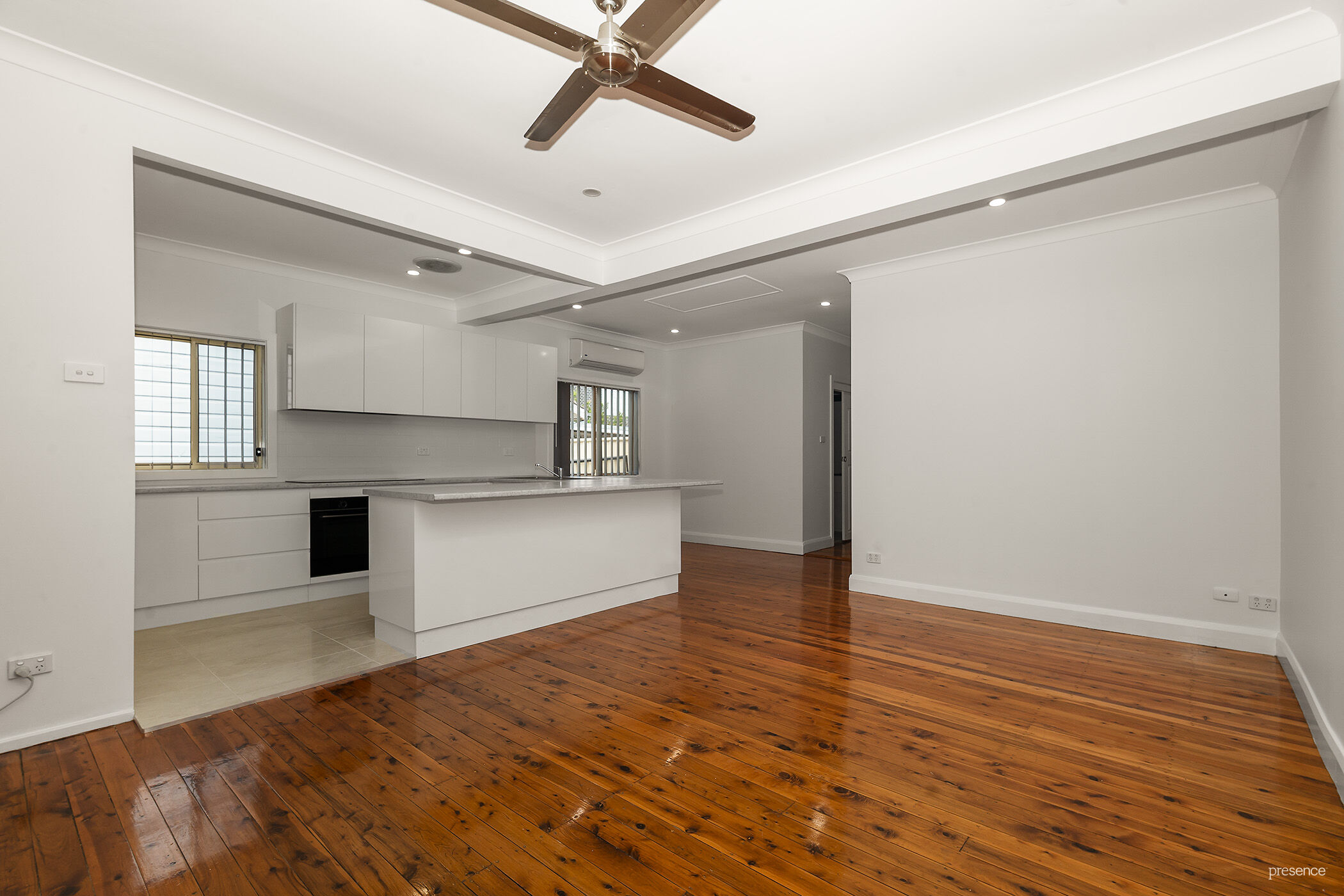 – Open-plan living and dining with reverse-cycle air-conditioning and ceiling fan
