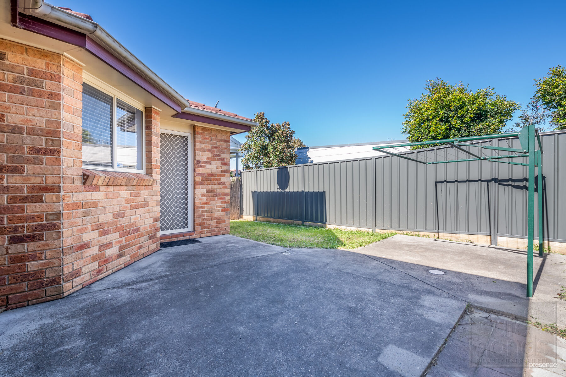 Lovely courtyard fully fenced with grassy area and cement area for the bbq