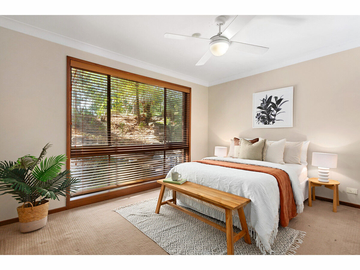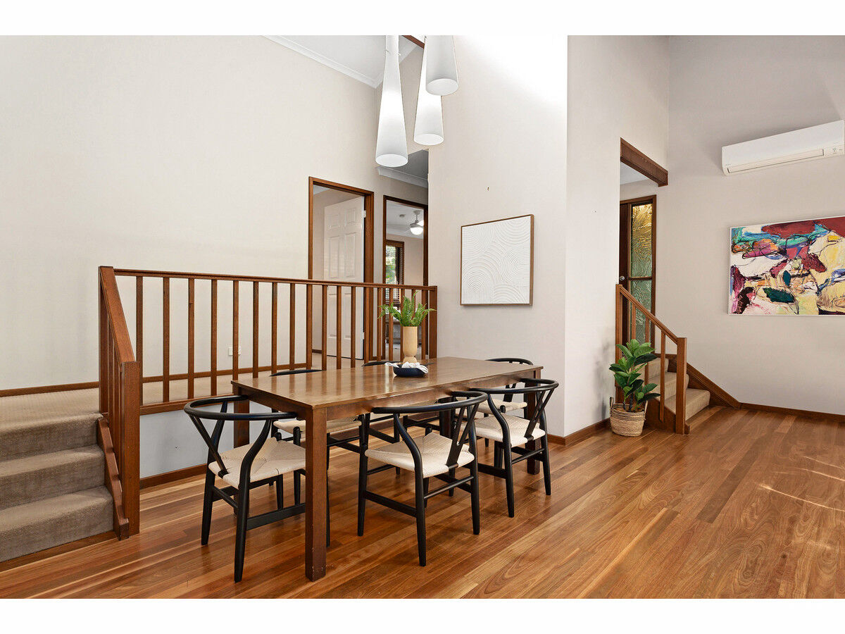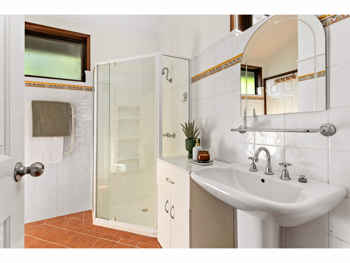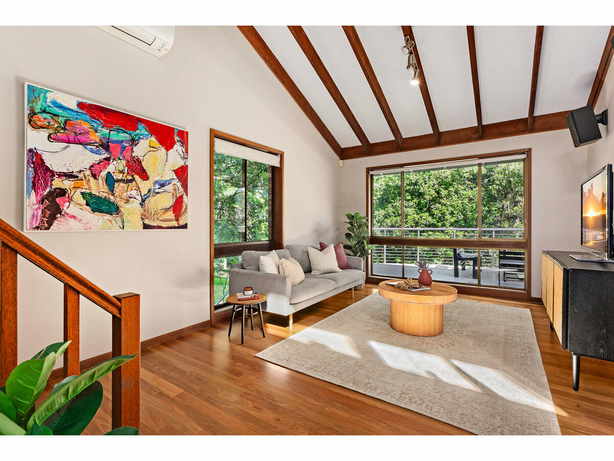 Soaring cathedral ceilings on both levels increase this home’s sense of space and aesthetic appeal, and its wide windows bring the leafy surroundings in. Wherever you choose to relax in the liberal selection of seating areas, you will enjoy the overall sense of calm and serenity. An outdoor patio, generous swathe of level lawn, and multiple levels of balconies promote outdoor enjoyment and easy entertaining. Bonus inclusions comprise air-conditioning, solar panels, a double garage with remote opener, separate workshop, and handy rainwater tank.