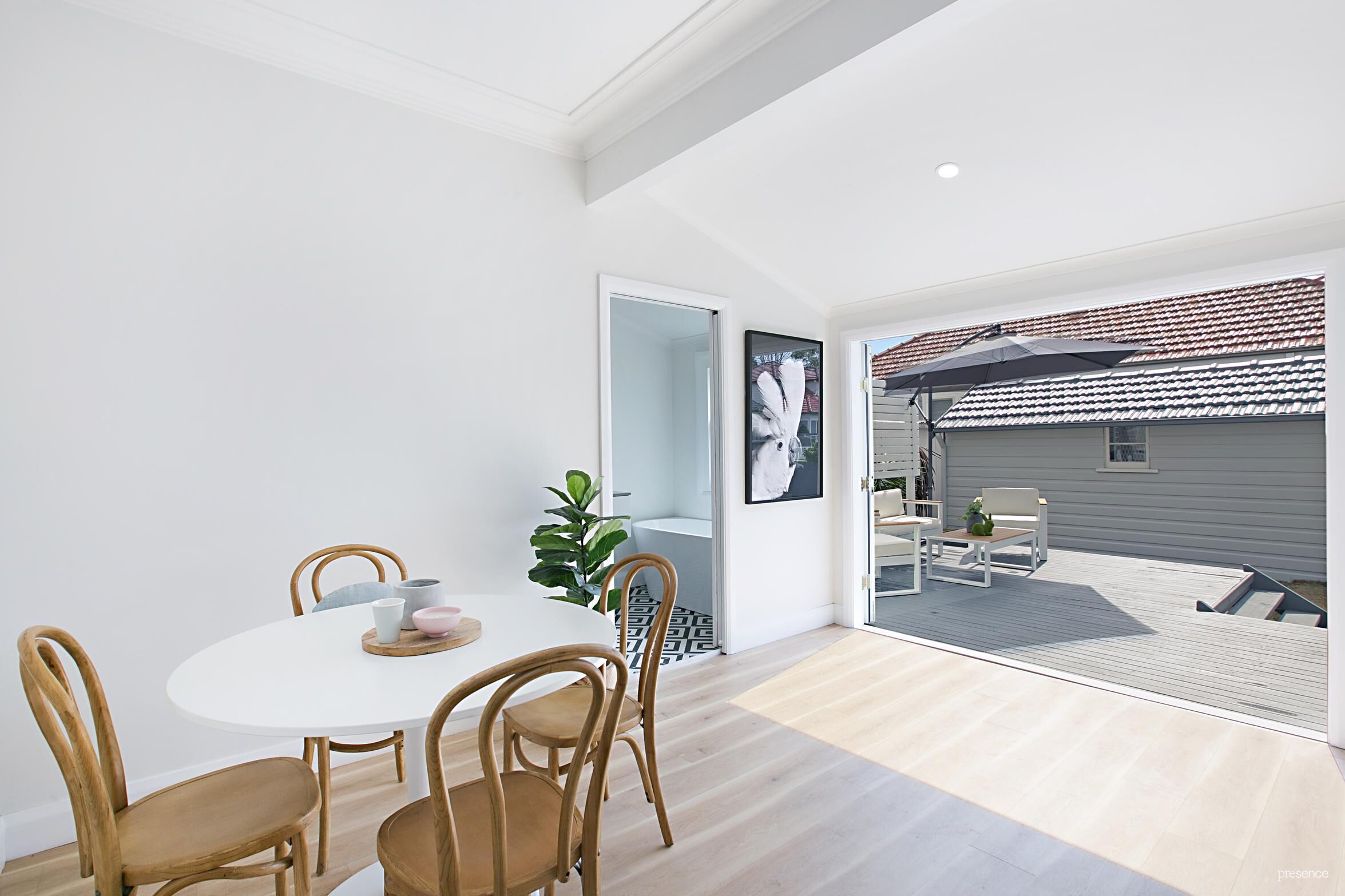 – Bi-fold doors open to seamlessly connect the house to a timber deck