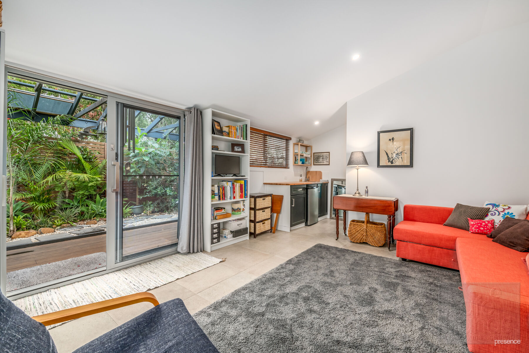 – Rear studio/bedroom three with kitchette including bar fridge plus a second bathroom