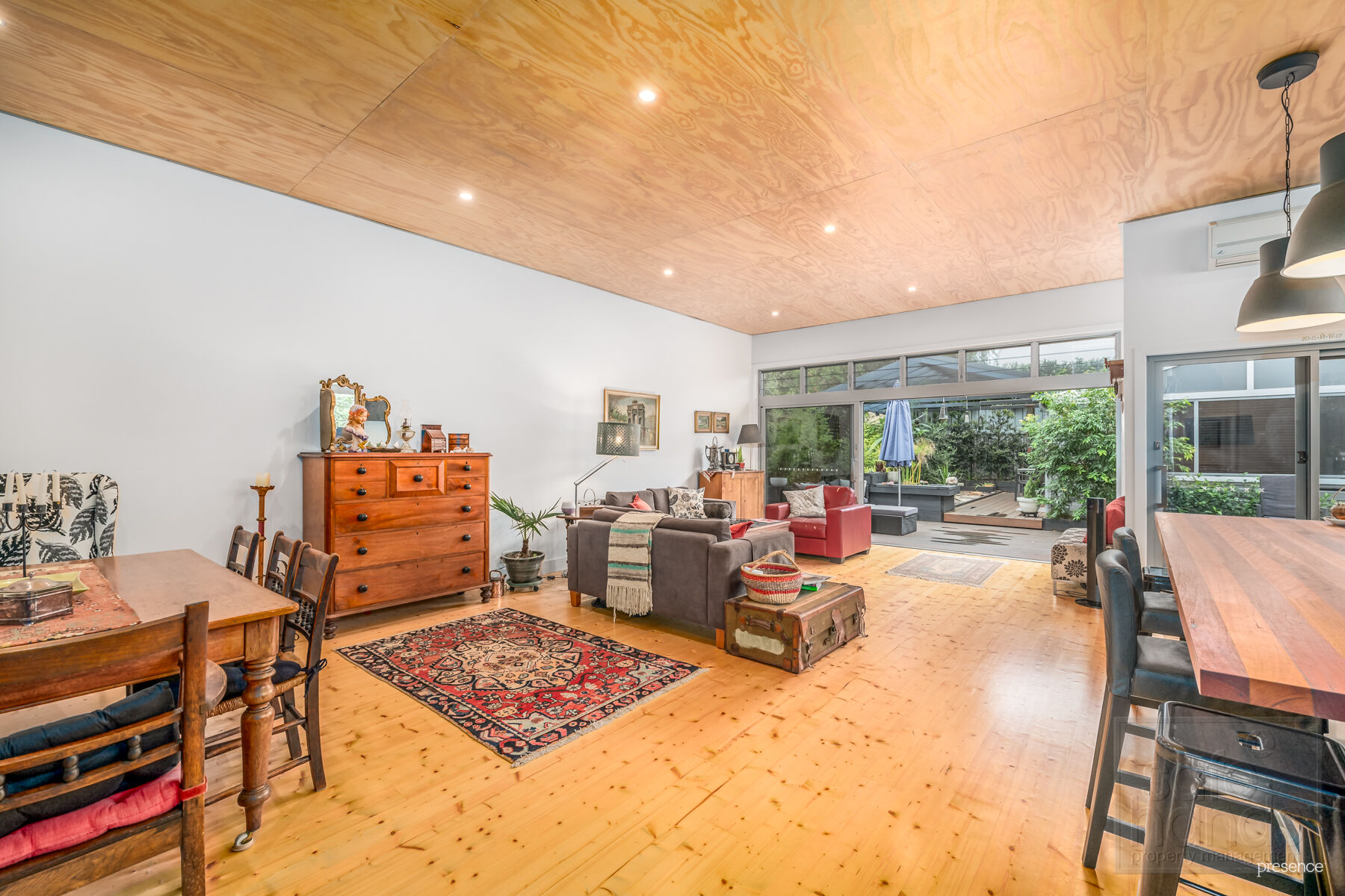 – Large light filled living and dining areas with full length window and slidinng doors, lovely timber floors and air-con for added comfort