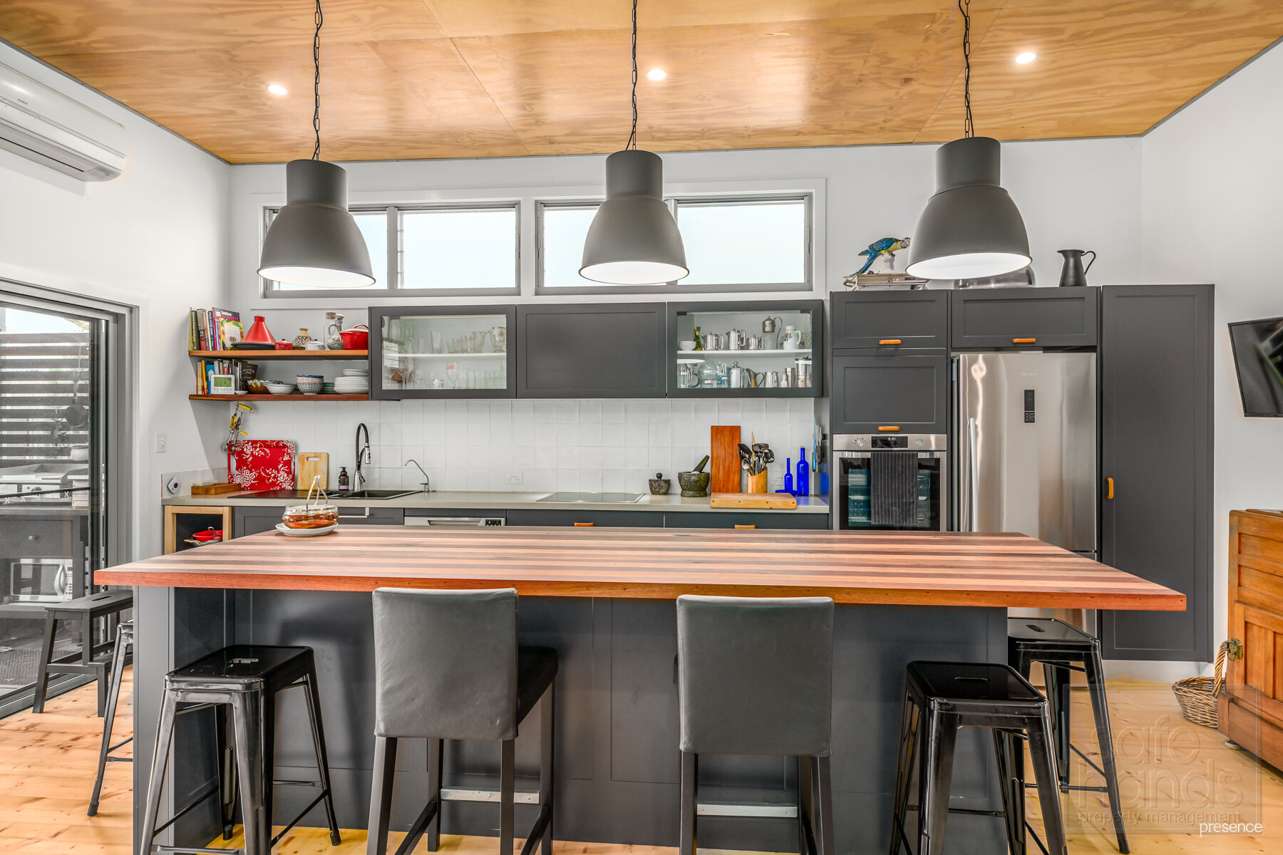 – Spacious modern kitchen with wonderful storage options, electric cooking, dishwasher, large island bench plus dishwasher, fridge and t.v all included
