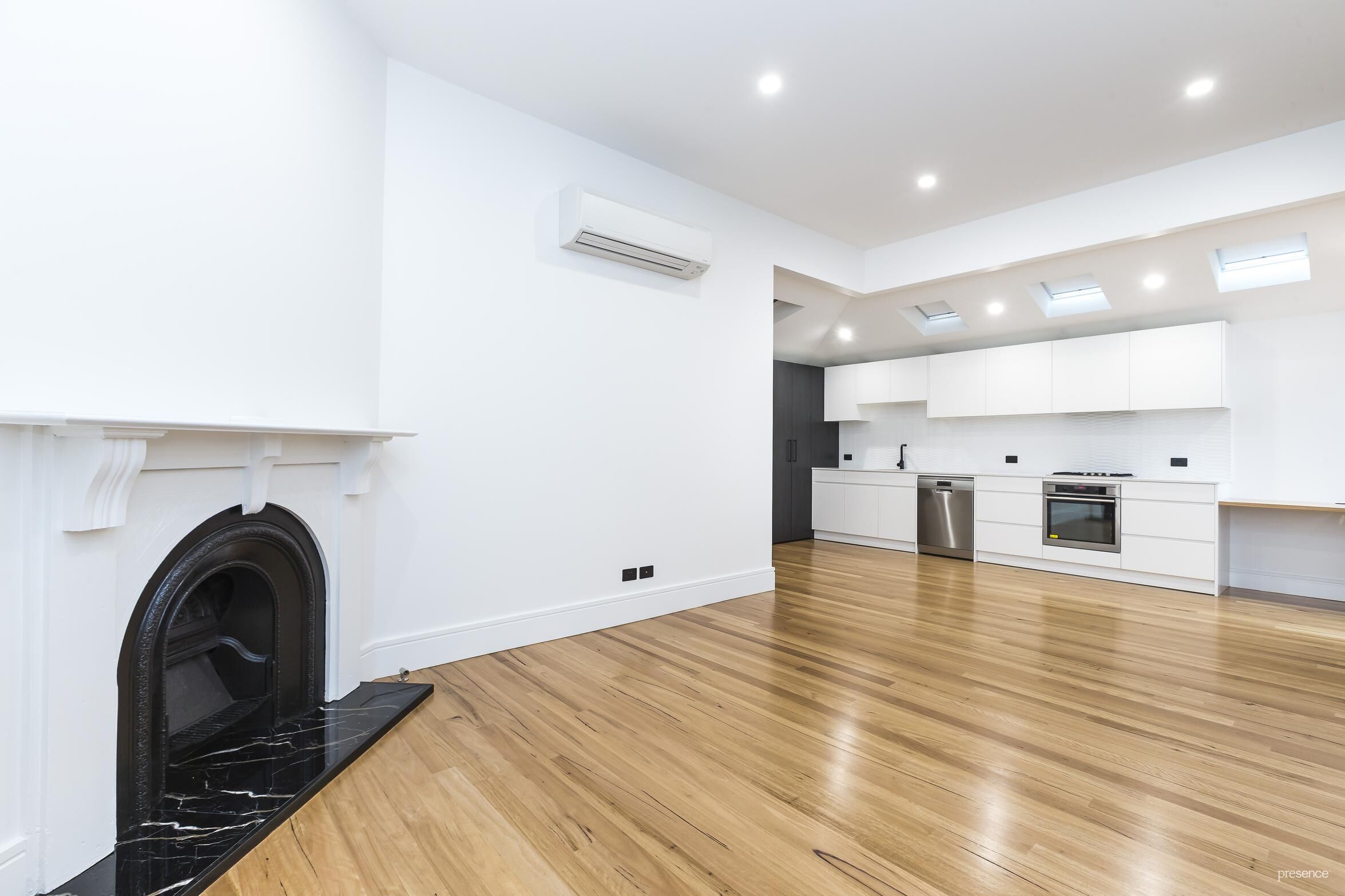 – Spacious open plan living, dining and kitchen with air-con, gas bayonet & ornate fireplace