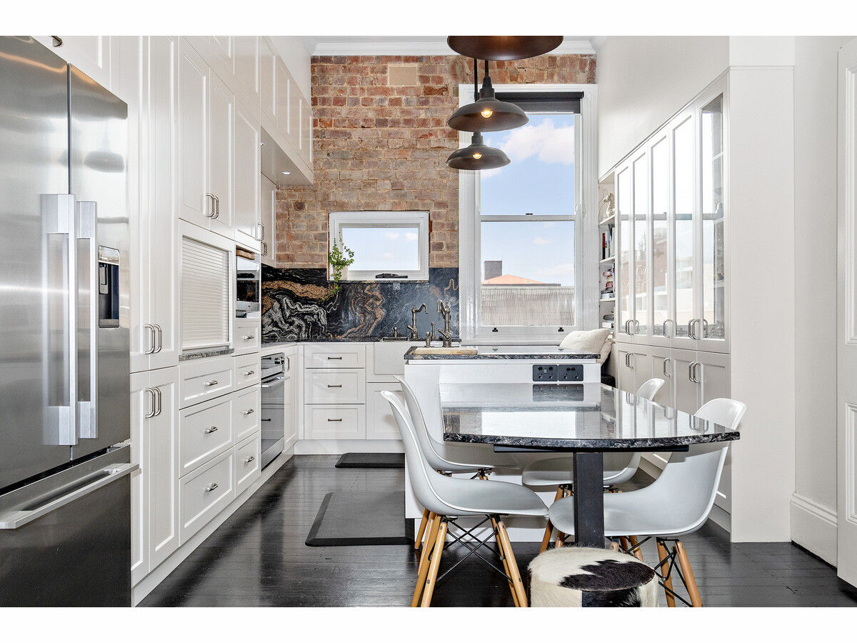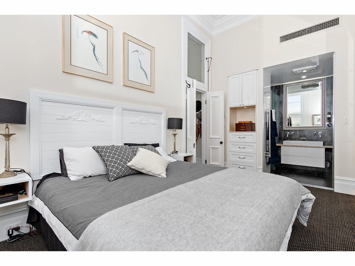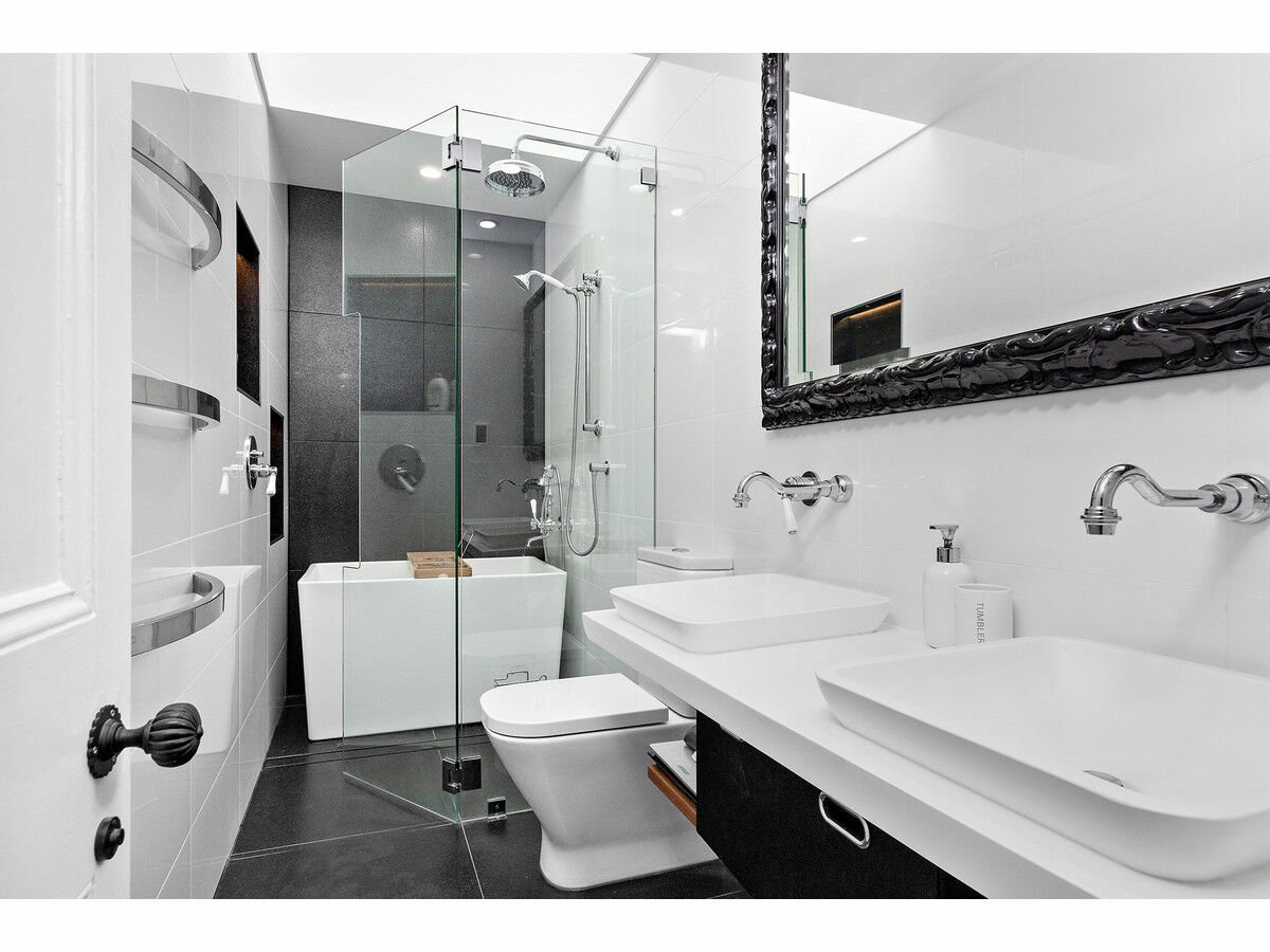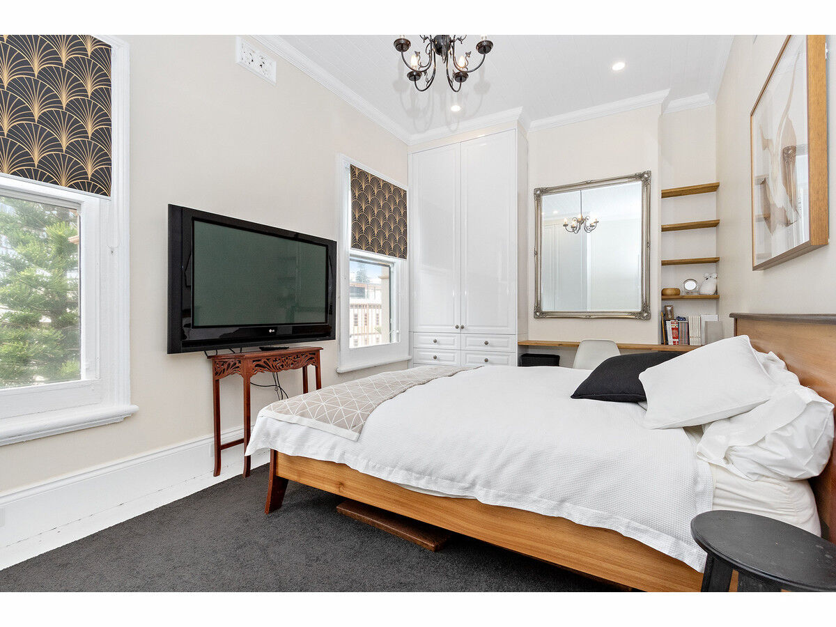 The ground floor offers the grand master suite, with a stylish ensuite, built-in robes, and classic federation features. The main living floor is open plan with a gorgeous bespoke kitchen with a electric cooking and self cleaning oven, dishwasher, dual sinks, and double door fridge. The living area has an ornate fireplace, large TV and multiple seating arrangements, plus an enclosed front balcony for further entertaining or unique home office space. The top floor boasts two large bedrooms, brand new skylight bathroom with a Japanese soaker tub plus an additional home office area and 3rd w/c on the landing.