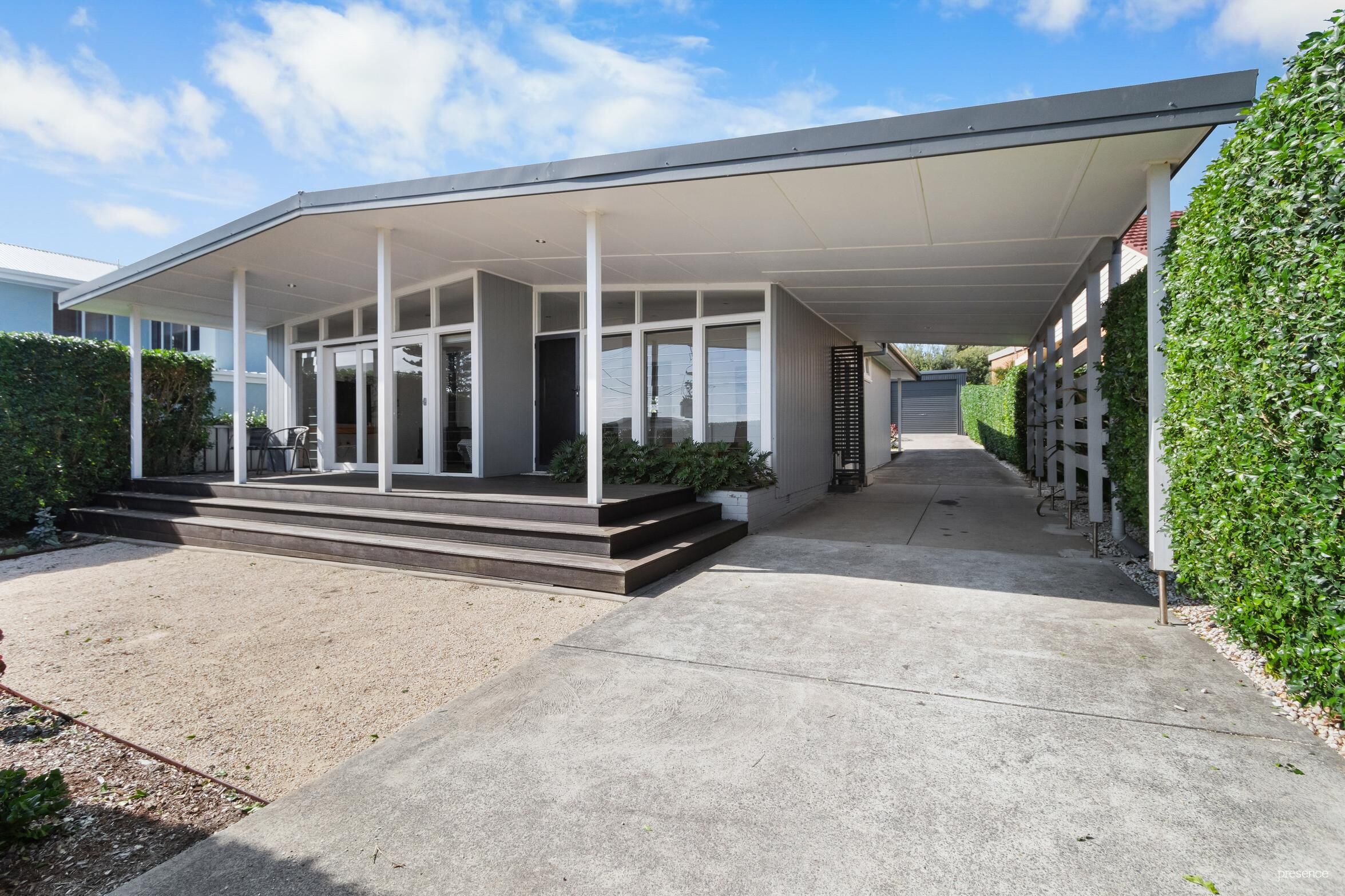 The home itself exudes true Mid-Century Modern architecture and comes with a very unique floorplan. Upon entry, you are greeted by the Living room with fireplace and sitting area come home office with custom shelving. The contemporary kitchen is placed centrally and continues through to the rear dining area. All living spaces are universal so feel free to change it up to suit your own lifestyle. The rear bedroom overlooks with the landscaped garden. Completing the home is the full-size bathroom and a separate toilet with internal laundry.
