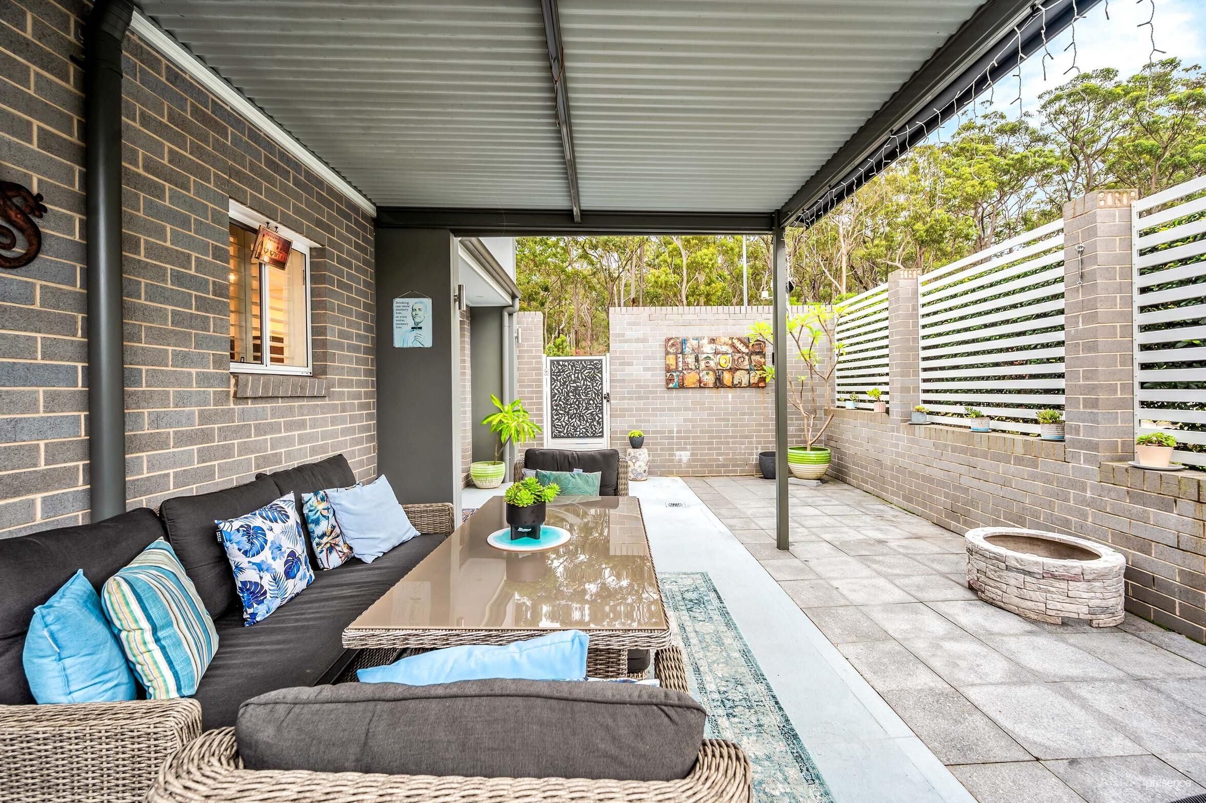 The private, covered alfresco area with retractable blinds provides the perfect space for gatherings or outdoor dining amidst peaceful surroundings. Enjoy the convenience of side access for boat or caravan storage, a single-car garage, and additional off-street parking in this exceptionally quiet location. Positioned across from a bush reserve, the property offers a serene and picturesque setting.