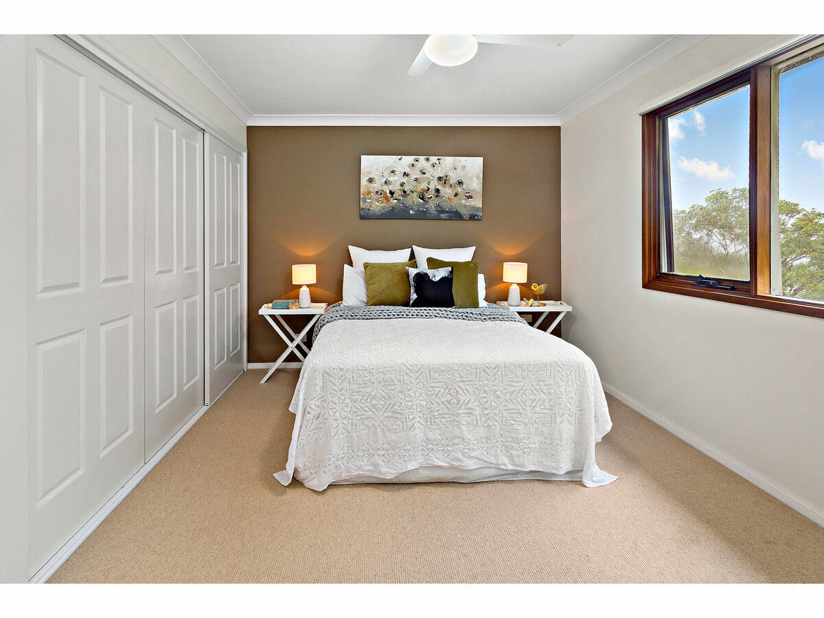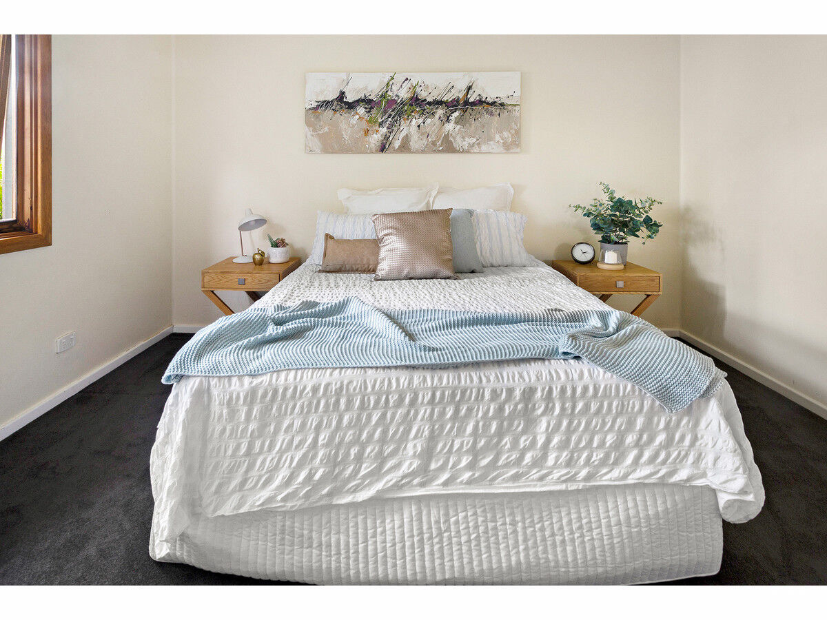 The dual level residence impresses immediately with a second storey covered deck gifting stunning lake views for picture perfect afternoons of alfresco dining or simply observing the ever-changing scenery. The beautiful finish inside is highlighted by the Blackbutt polished timber flooring and tasteful colour choices are accentuated by the abundant natural light. Downstairs offers a large living space with open plan kitchen, dining and lounge which opens onto a first-floor timber deck with garden views. There are built-ins in both the bedrooms and a shared modern bathroom and roomy kitchen with a Caesarstone bench. The second floor presents three more bedrooms, including the master with built-in wardrobe, ceiling fan and ensuite as well as a large living space framed by beautiful full-length windows and glass doors opening onto the deck.
