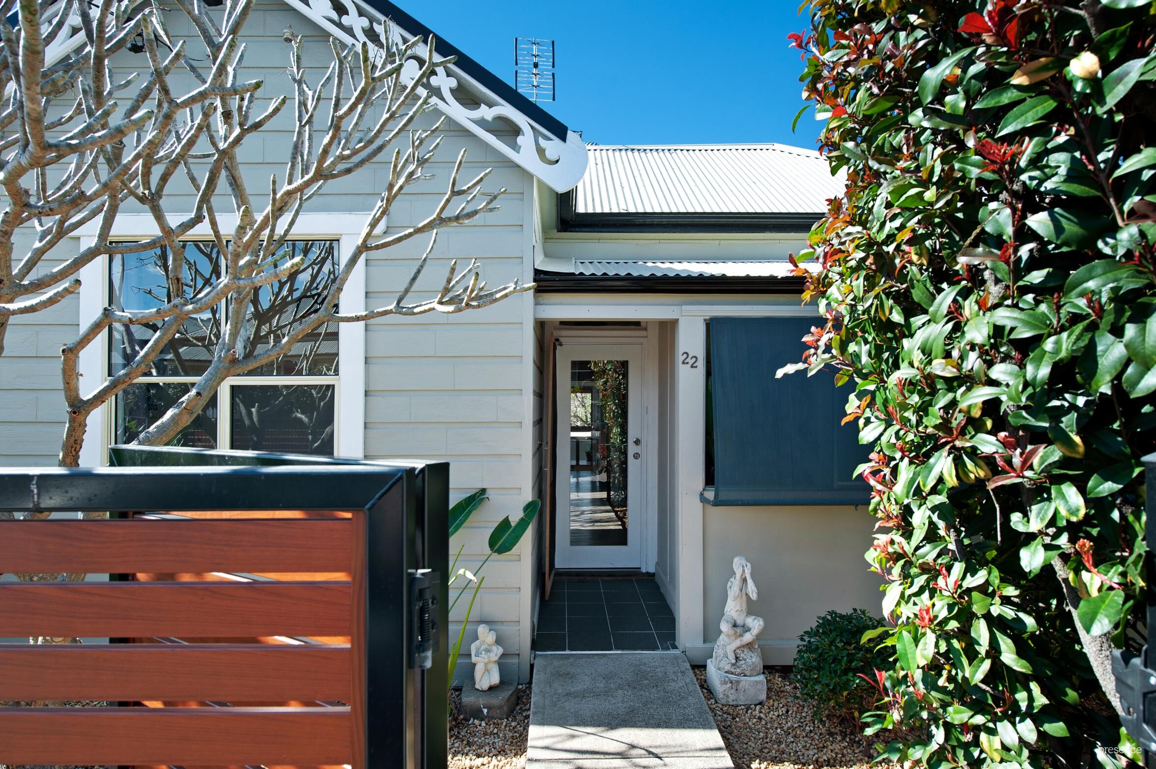 The lovely front entrance gives a sense of home with the gardens and fencing providing privacy and security.