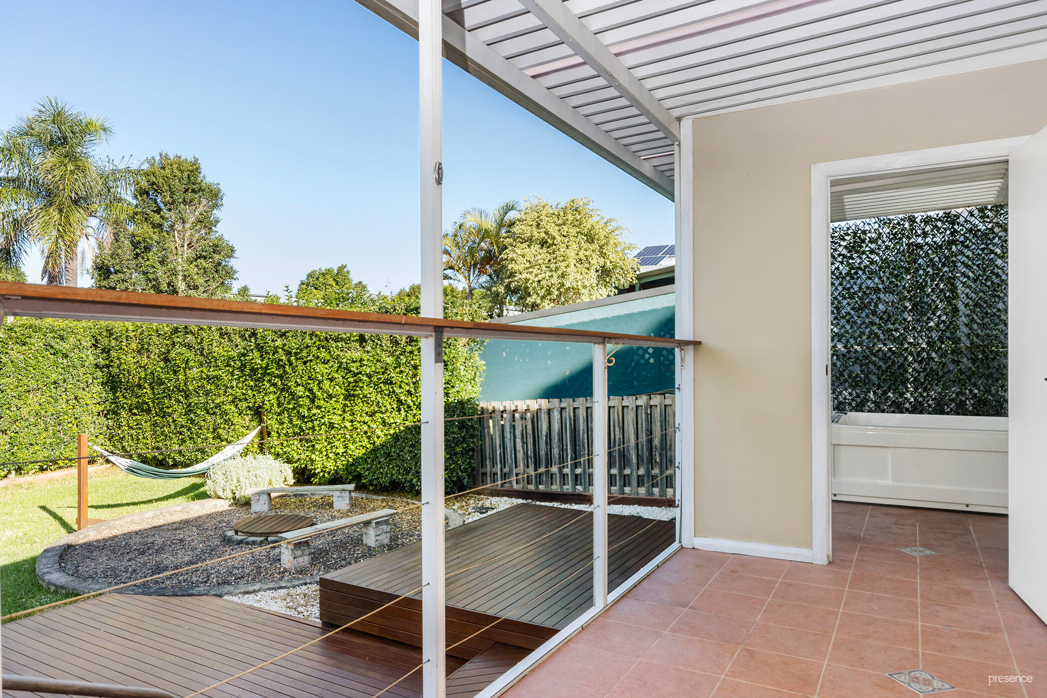 Featuring polished floorboards throughout, main bedroom with a built-in robe and ceiling fan, a second bedroom located at the rear, centrally located bathroom, and an open-plan kitchen/dining area with electric cooking, and dishwasher. Bi-fold doors open onto a covered entertaining area, seamlessly blending indoor and outdoor living.