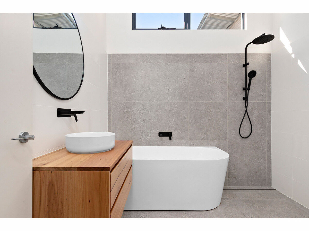 – Island kitchen with timber benches, new induction cooktop, and dual drawer dishwasher