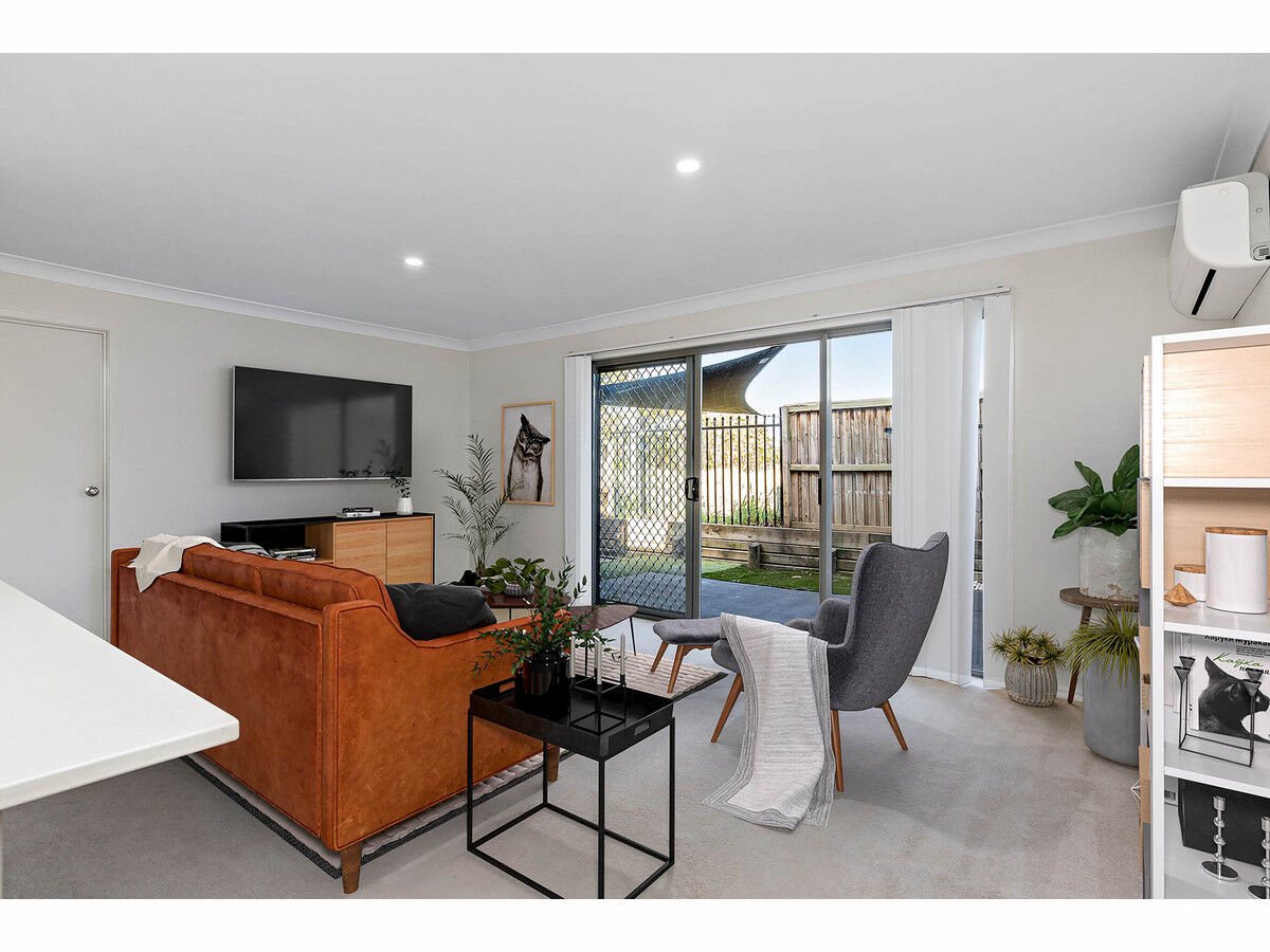 The property itself is air-conditioned to both levels, offering an open-plan living, dining, and kitchen area to the main level with courtyard access. Also on the ground floor is the single lock-up garage and internal laundry with w/c.