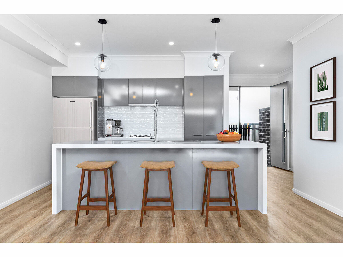 Upstairs is a further central living space, perfect for the home office. Large rear master bedroom with private balcony, walk-through robe and showered ensuite. Bedrooms two and three are a great size, both robed and full of natural light, these are serviced by a sleek and stylish full-size main bathroom. The property also has a central greenspace for your enjoyment.