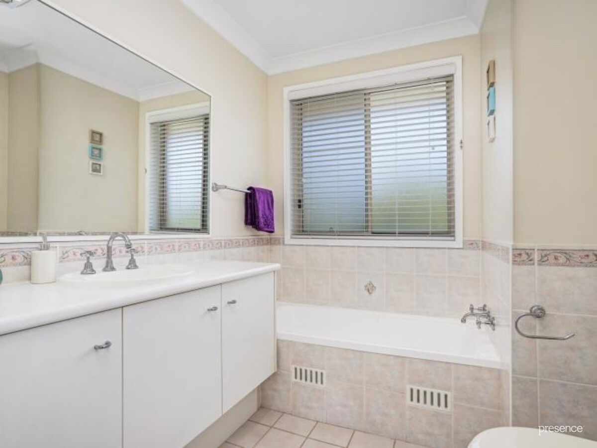 Upstairs are three bedrooms, all have ceiling fans plus air conditioning throughout and built in robes. The oversized master bedroom has walk thru robe and private ensuite.