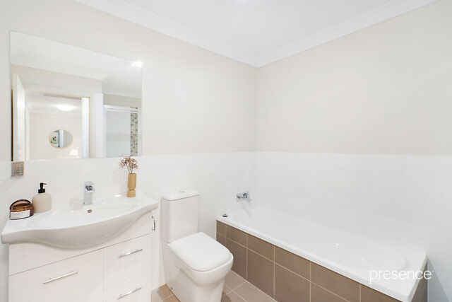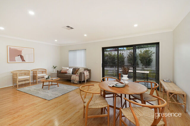 The property itself exudes a sophisticated style light-filled living areas, sleek full-size kitchen, all flowing out to the private courtyard and low-maintenance gardens. Adding a touch of luxury is ducted heating and cooling to both levels, plush carpeting to the bedroom zones and easy care flooring to living areas. Three good size robed bedrooms are serviced by a full size family bathroom, ensuite to the master and third w/c on ground floor internal laundry.