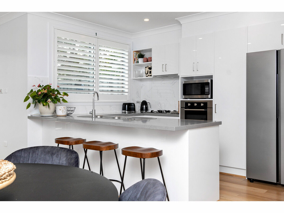 The full-size kitchen offers a great bench to allow meal preparation for meal times or eat-in breakfast with the family. Gas cooking and great storage in the contemporary full-size kitchen. Under the staircase is a fantastic amount of storage area, there is a good size laundry with a third toilet located on this level along with the sought-after double garage with internal access.