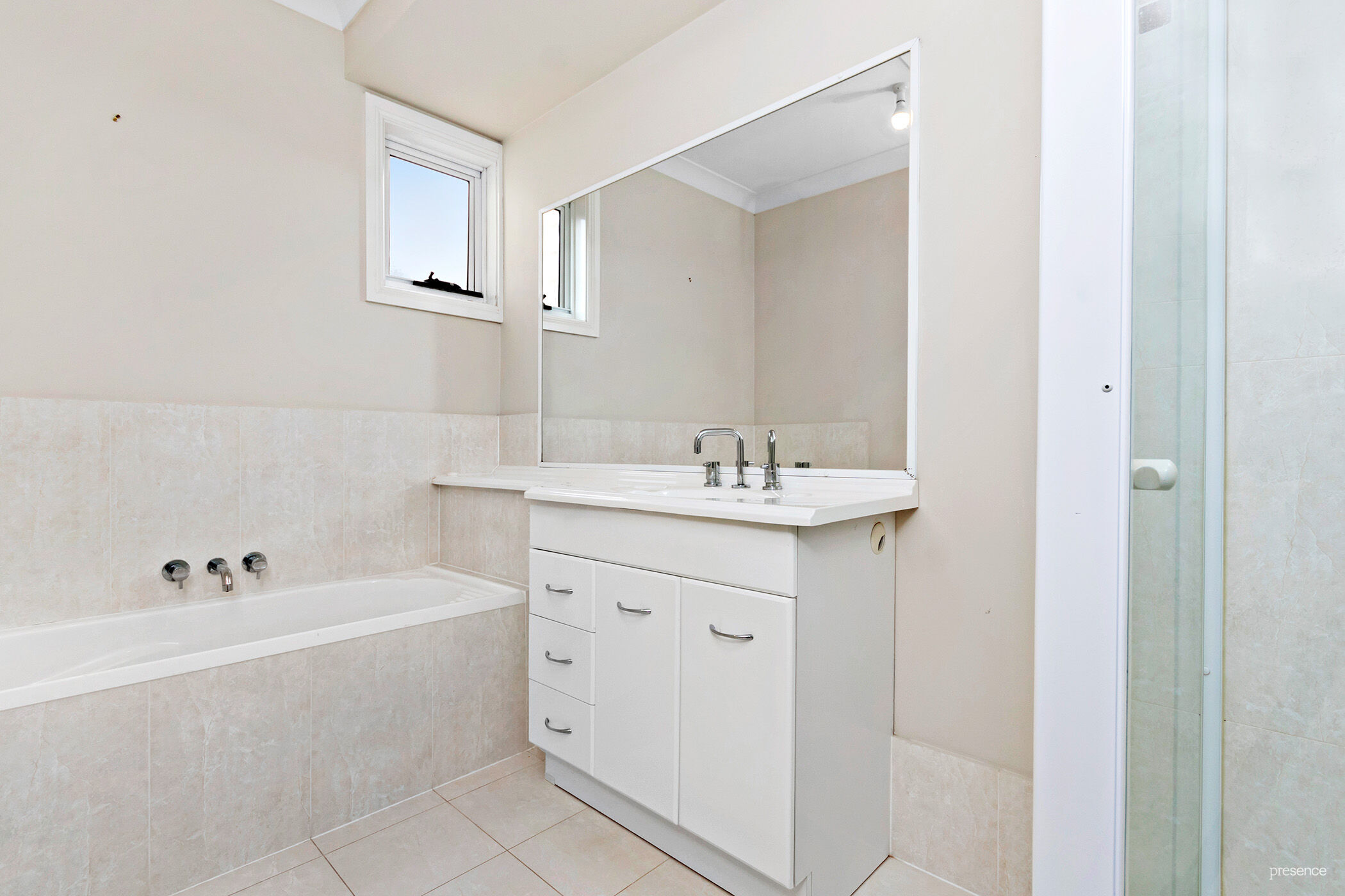 Master bedroom and ensuite located on ground level with built-in wardrobe. The other two bedrooms on the second level boast ceiling fans, built-in wardrobes, and air conditioning.