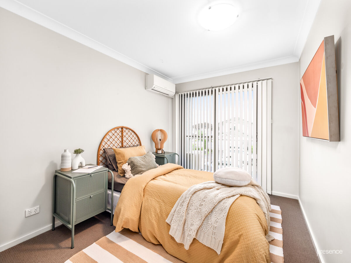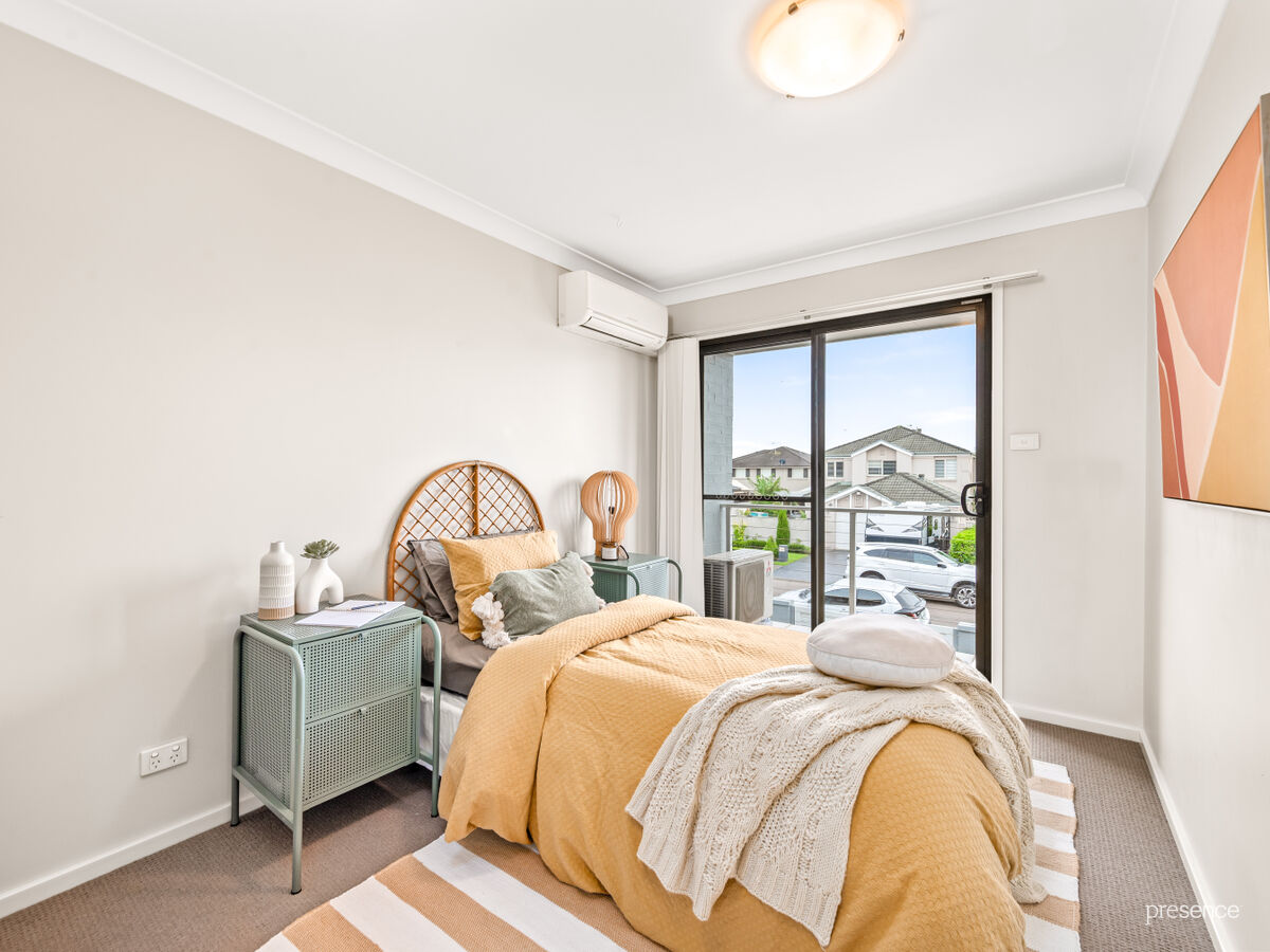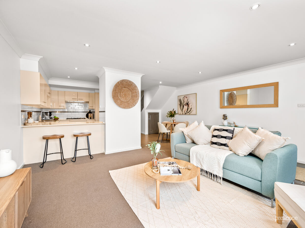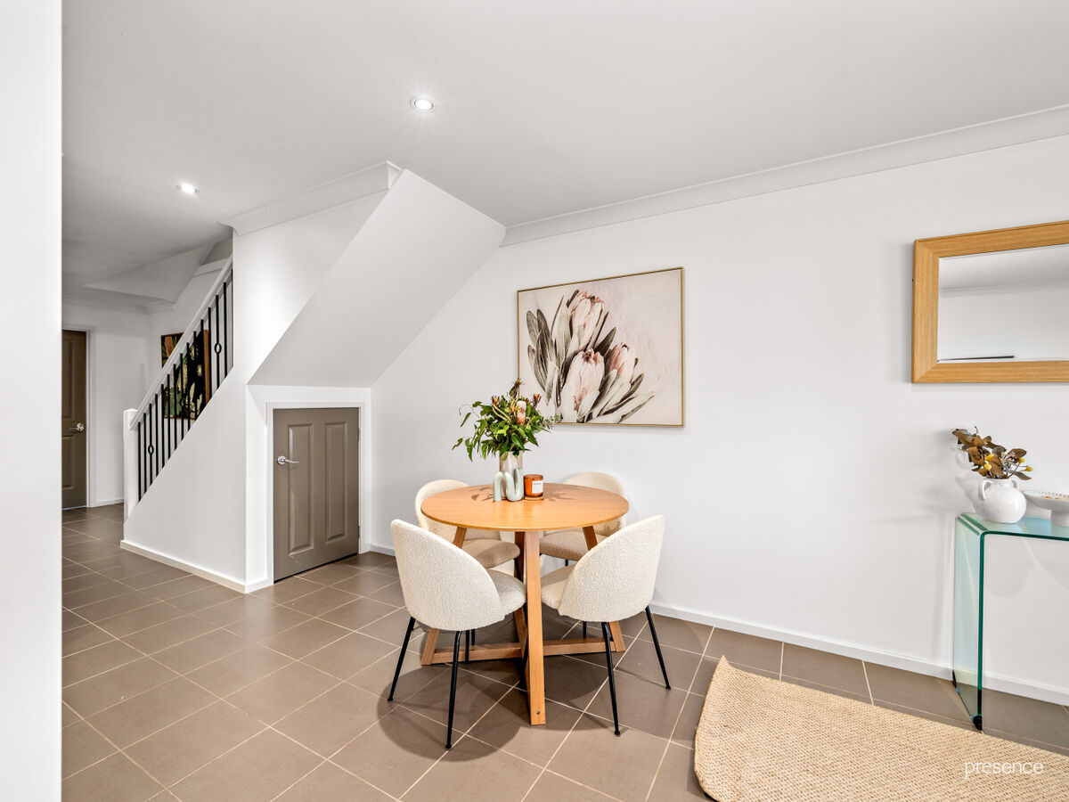 The layout is designed to impress – with a ground floor master bedroom complete with ensuite and built-in robe, plus open-plan living and dining that seamlessly connects to two private courtyards. A modern kitchen with stone benches, gas cooking and a breakfast bar makes mealtimes and entertaining effortless. Upstairs you’ll find two additional robed bedrooms, a study nook, main bathroom, and a private balcony retreat.