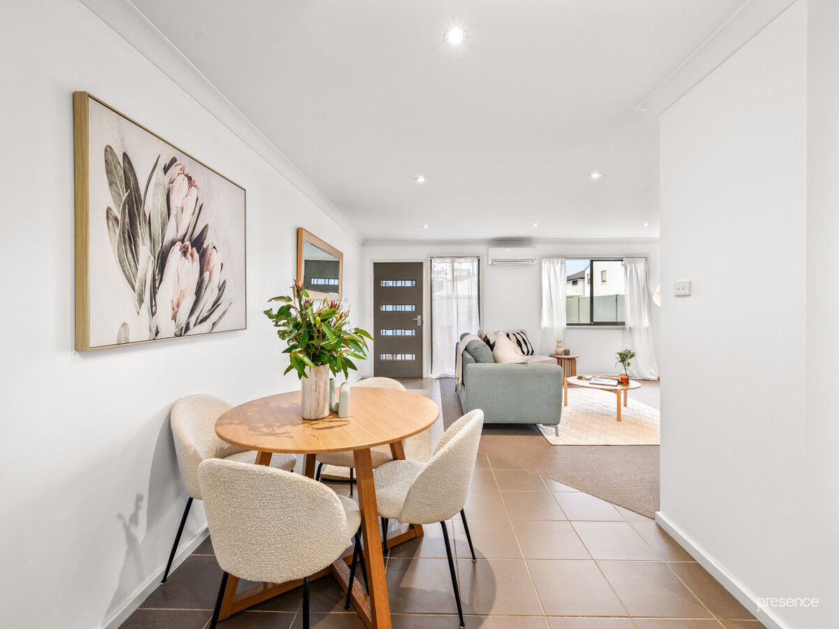The layout is designed to impress – with a ground floor master bedroom complete with ensuite and built-in robe, plus open-plan living and dining that seamlessly connects to two private courtyards. A modern kitchen with stone benches, gas cooking and a breakfast bar makes mealtimes and entertaining effortless. Upstairs you’ll find two additional robed bedrooms, a study nook, main bathroom, and a private balcony retreat.