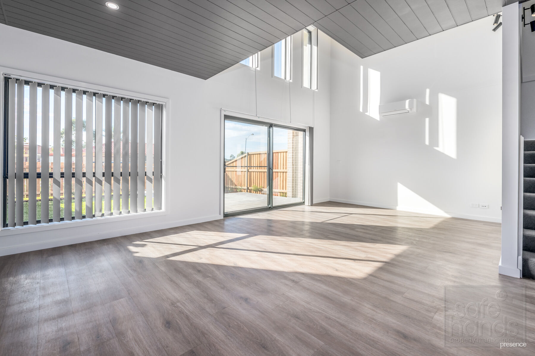 – Large double height living space with reverse cycle air-con and feature lighting