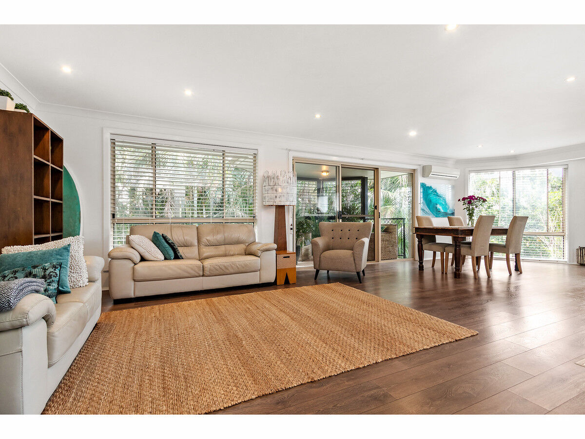 Upon entry you are greeted by a sitting area come home office that leads to the oversized wrap-around tropical courtyard, garden and outdoor kitchen entertaining area, including an outdoor shower. The ground floor comprises of two bedrooms each with built-in robes and ceiling fans serviced by a full-size bathroom and internal laundry. Completed by the double remote entry garage with internal access.