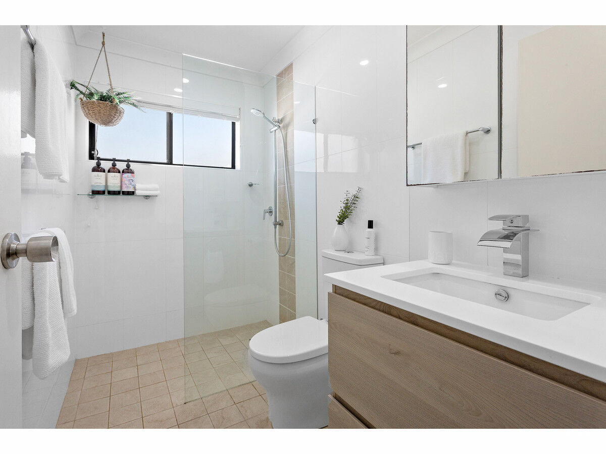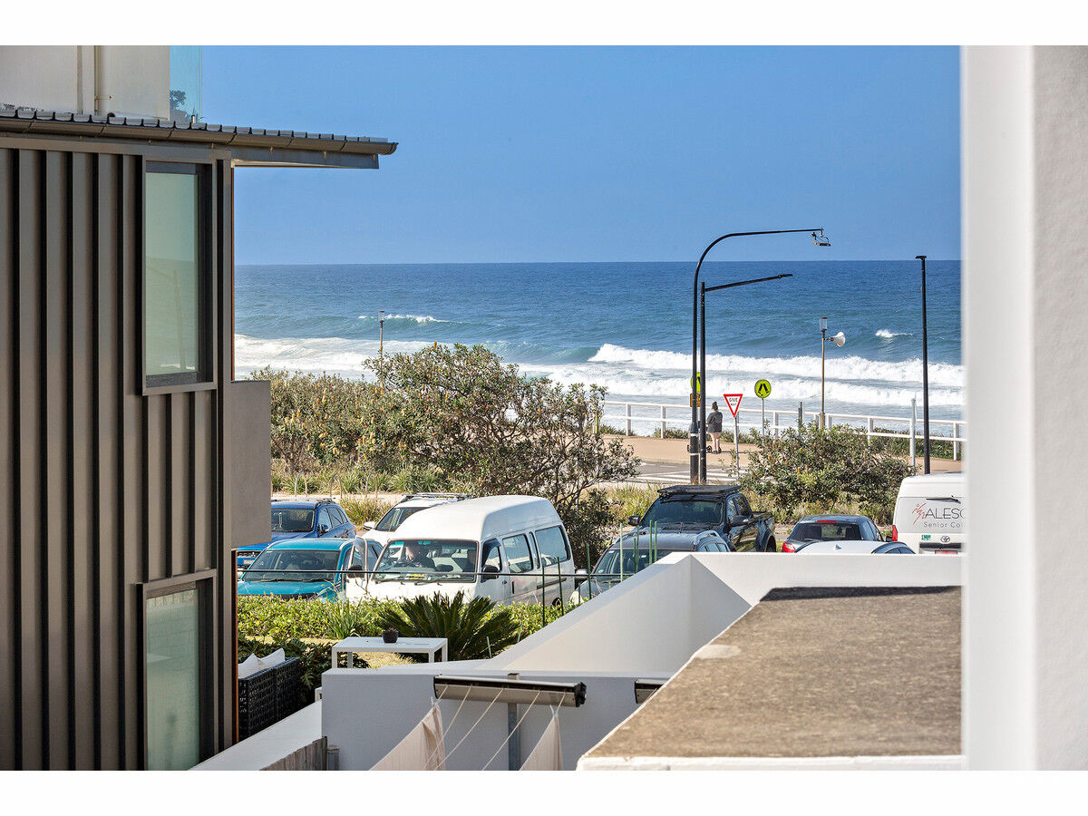 Spanning three levels, the home has been thoughtfully designed for comfort and easy living. The ground floor includes a combined bathroom and laundry – perfect for rinsing off after a swim or surf. The mid-level features bright open plan living and dining flowing to a north-facing balcony with ocean views and cooling sea breezes, complemented by a sleek Caesarstone kitchen with quality appliances. Upstairs, two robed bedrooms provide peaceful retreats, including the main bedroom with its own balcony to soak in the coastal outlook.