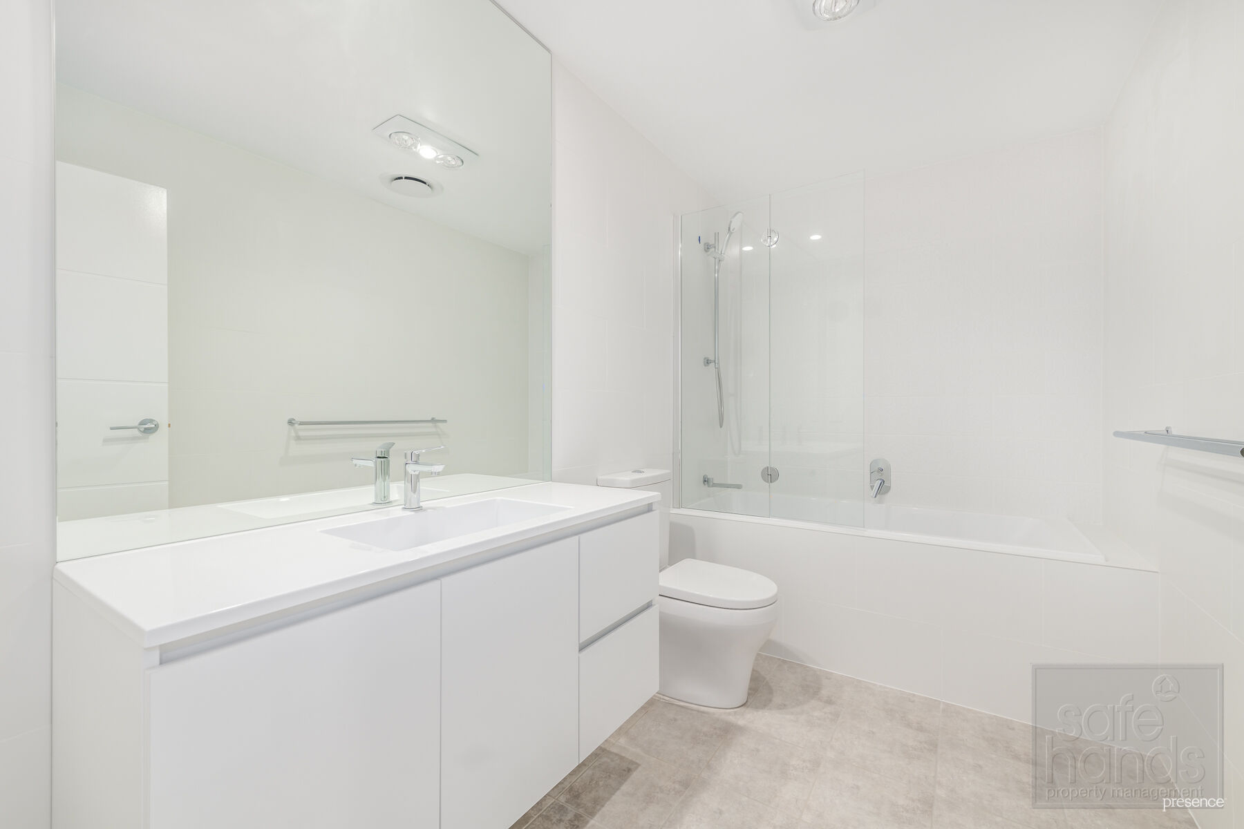 – Sleek familiy bathroom with shower, bath vanity and w/c