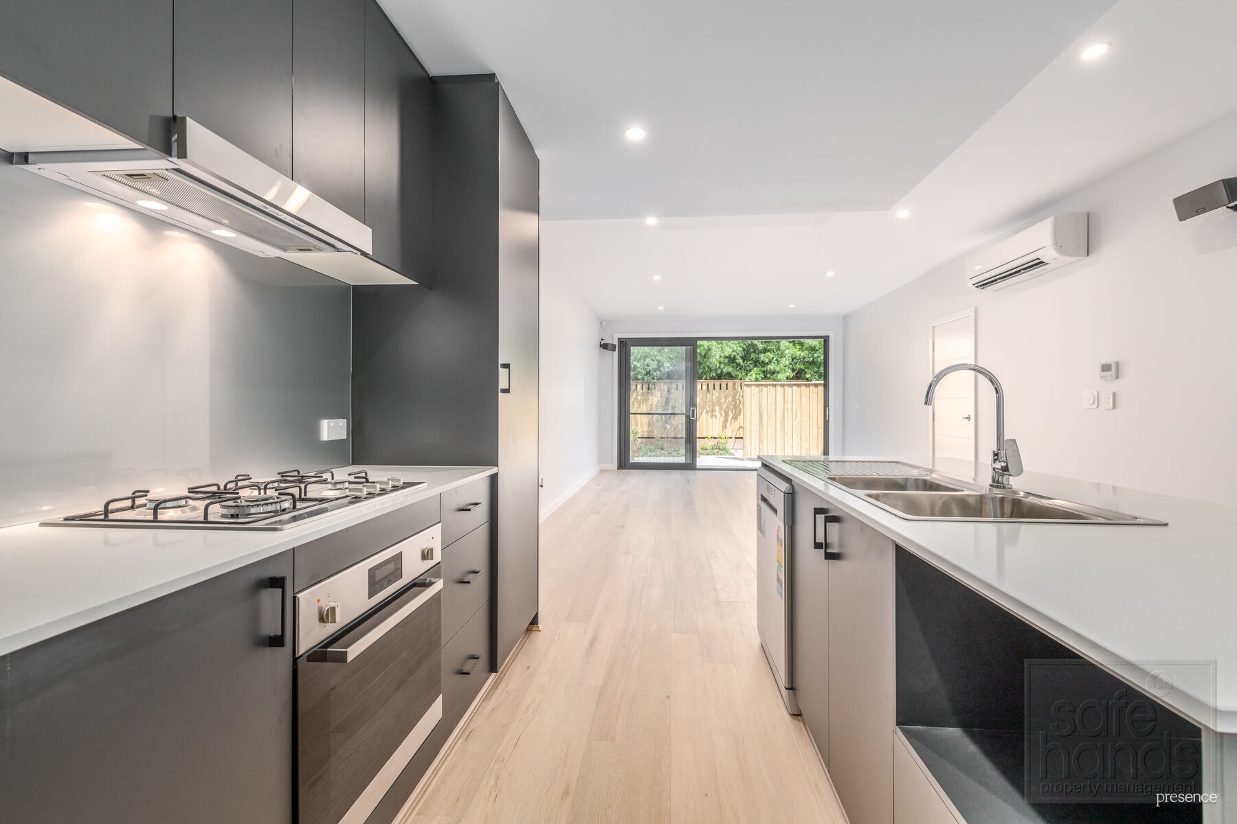 The property itself offers a private master bedroom with built in wardrobes and ensuite, bedrooms two and three are serviced by a sleek family bathroom and own separate study space. The living areas are vast and to the highest specification showcasing a modern kitchen all flowing out to your own private fully fenced courtyard where pets are welcome upon application and approval.