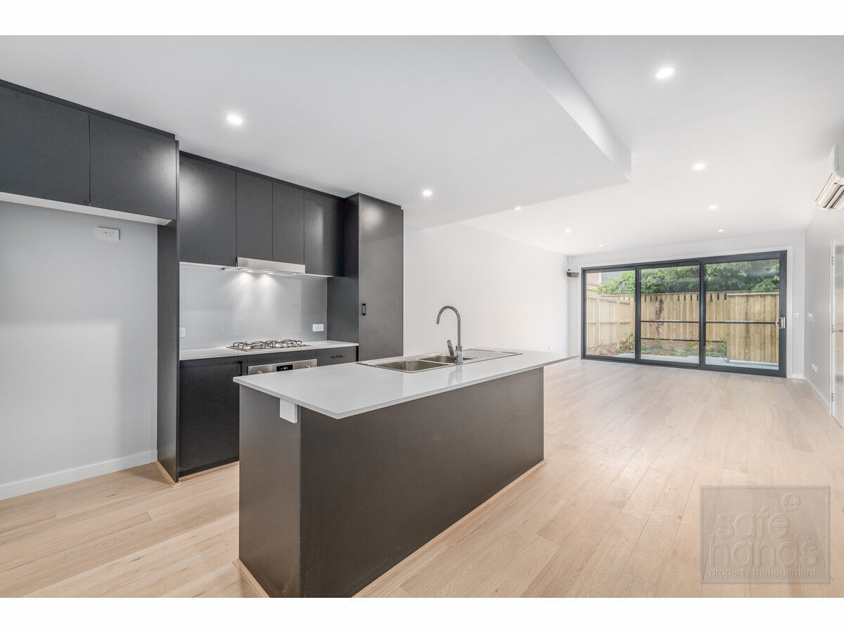 The property offers a private master bedroom with built in wardrobes and ensuite and bedrooms two and three are serviced by a sleek family bathroom. There is also the convenience of a dedicated study space. The living areas are vast and showcase a modern kitchen all flowing out to your own private fully fenced courtyard.