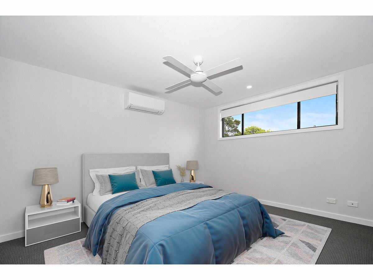This particular townhouse offers the same style of floor plan with a single bedroom and bathroom on the ground floor and two robed bedrooms serviced by a two way bathroom on the top floor. In addition, you have a sitting area and study area spread across these levels as well. The mid-level showcases a spacious open-plan living, dining, and kitchen area, seamlessly extending to good size, covered patio—perfect for entertaining. For optimal comfort, all bedrooms and the main living area are equipped with individual air conditioning. Additional conveniences include an internal laundry, a single lock-up garage. Plus your own low-maintenance rear courtyard space.