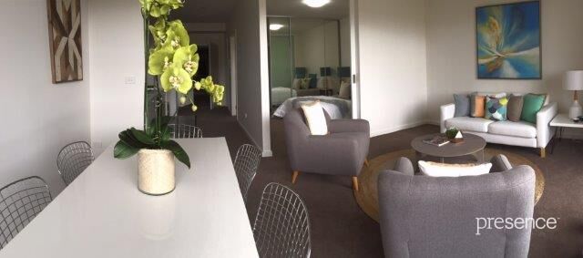 This vibrant and stylish apartment is centrally located on the plaza at the corner of Ernest and Macquarie Streets & the Pacific Highway.
