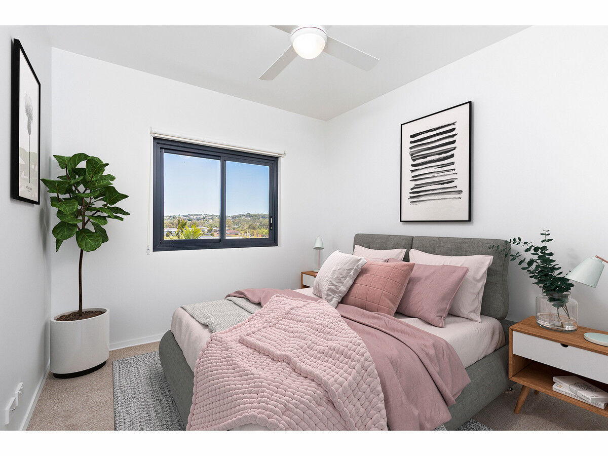 The bedrooms are separated to each side, the master with walk-in robe and ensuite, while bedroom two has a built-in robe and both have ceiling fans. They each overlook the stunning views all the way to the city skyline. Catch a glimpse of the hang gliders or the new years eve fireworks. Completing the property is the showered bathroom, internal laundry, added storage, single lock-up garage space, and storage cage. Plus don’t forget the rooftop communal entertainment area.
