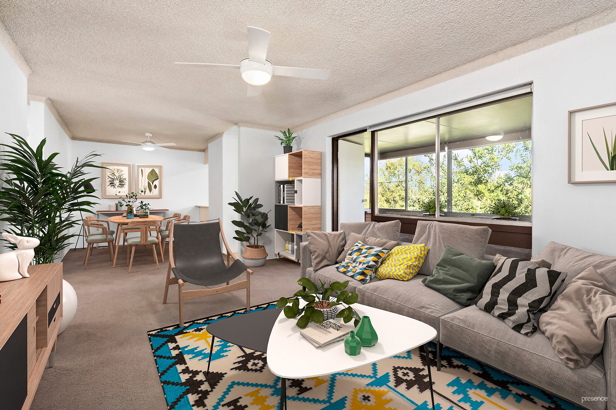 This spacious property has secure intercom access and remote garage access. Located privately on the top floor you will find the space on offer superior to most units in the area. With two ceiling fans in the living and dining area. The neat kitchen offers a modern electric cooker, good storage, and a breakfast bar. Each bedroom are a good size and has complete wardrobe storage. and ceiling fans. These are serviced by the central full-size bathroom. Plus you have a light-filled enclosed verandah, perfect home office space, or fill it with all your plants and groovy furniture. The laundry is located to the rear of your private single lock-up garage.