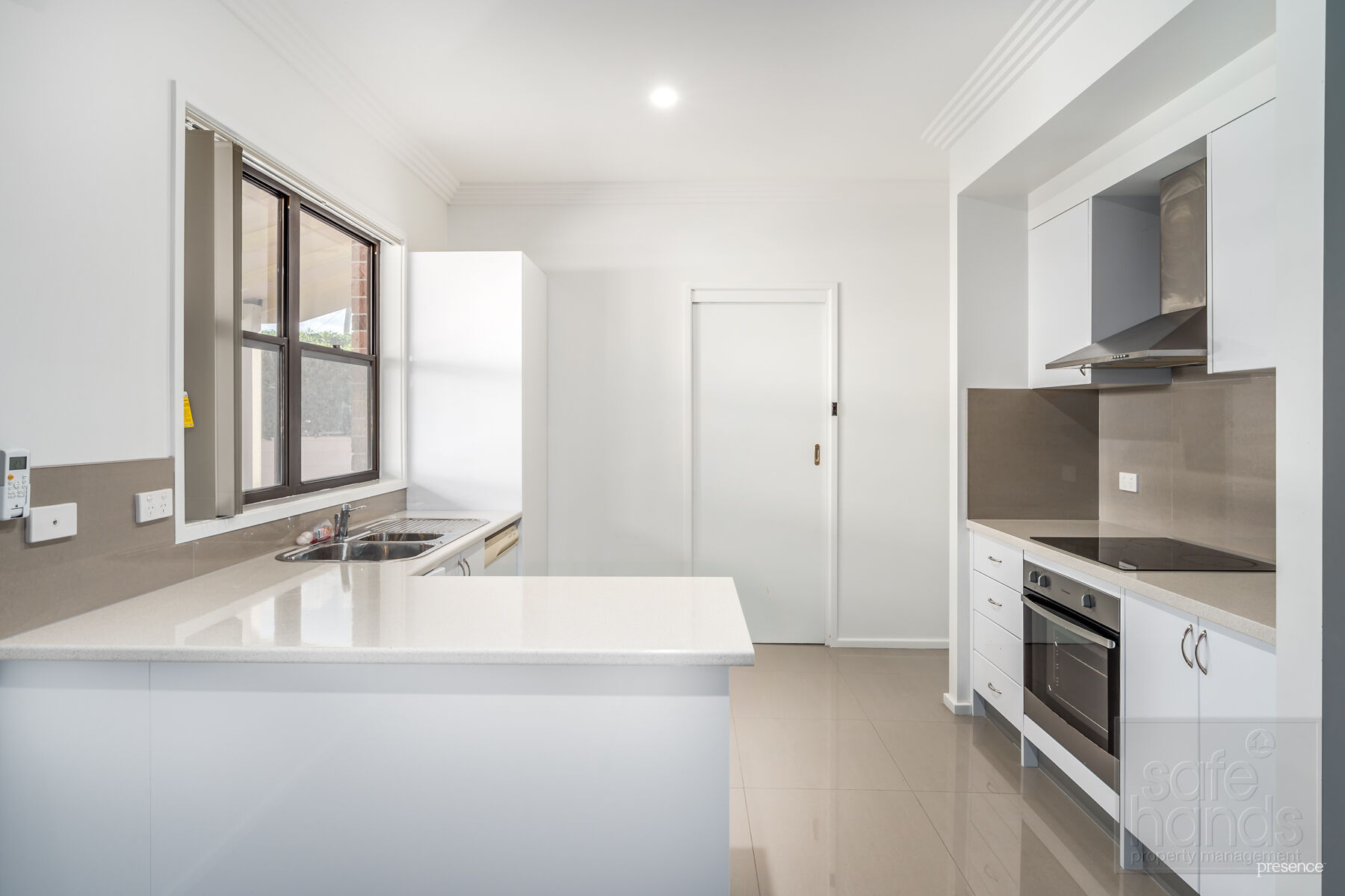 The large open plan living area has an abundance of natural light from the north facing cathedral ceilings with dormer windows and the dining room is fully tiled. The beautiful white high gloss modern kitchen is equipped with electric appliances and has a breakfast bar servery to the dining room.